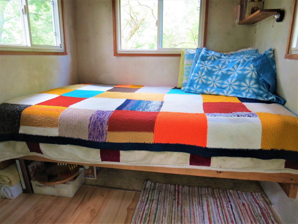 Lawrene – a successful actress and spare time weaver (and former lighthouse keeper!) in Florence, Canada – is proof positive of that unique hospitality, through her own treehouse. After enjoying an Airbnb stay in Brooklyn, Lawrene wondered what it would be like to try hosting herself, sharing the off-grid space she and her husband built for themselves 10 years earlier, right in their backyard.