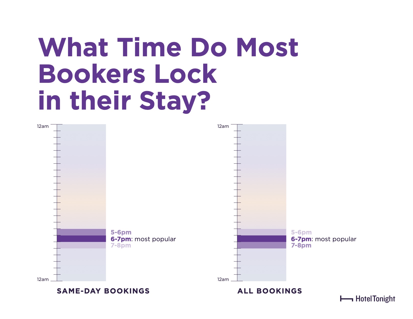• Whether booking same-day as check-in, or in advance of a hotel stay, the 6-7pm hour was the most popular hour to book a hotel room.