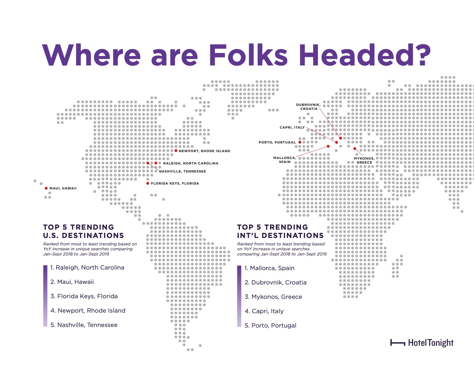 Based on the YoY increase in unique searches on HotelTonight from January – September 2018 to January – September 2019