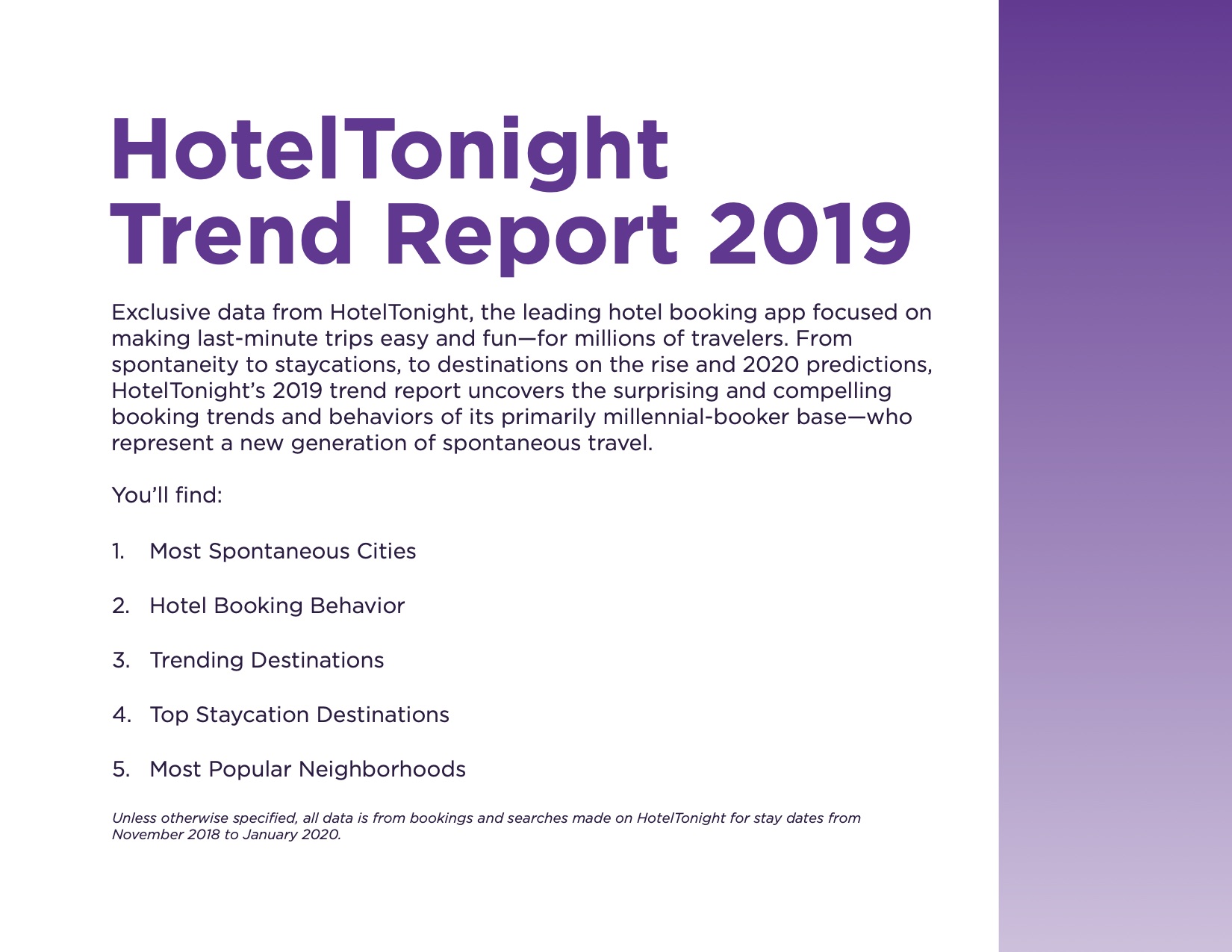 *Unless otherwise specified, all data is from bookings and searches made on HotelTonight for stay dates from November 2018 to January 2020.