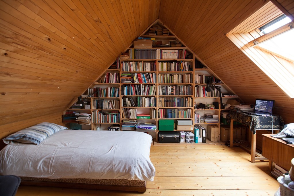 Una casa in legno di inizio ‘900 ospita, nel sottotetto, una confortevole mansarda dove rifugiarsi con un buon libro inebriati dal profumo e dal calore del legno.