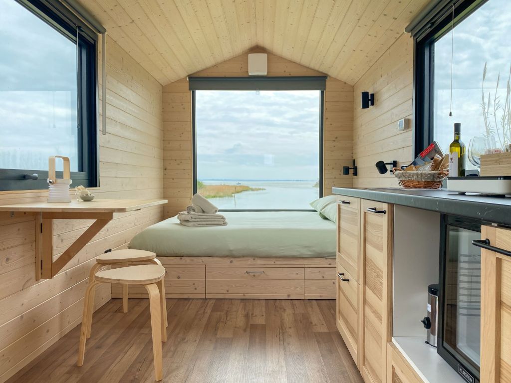 Affacciata sulla Laguna di Marano, Friland è una piccola casa mobile autosufficiente. In 12mq c’è tutto, dal letto alla cucina. Tutto minimalista, in stile nordico.