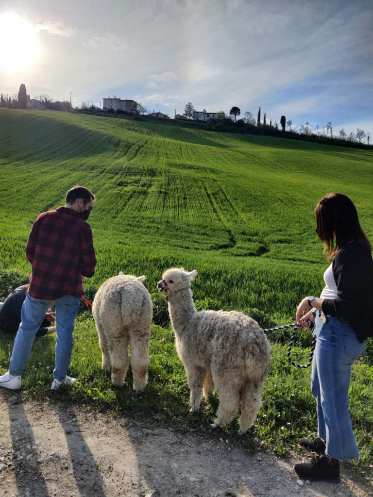 Passeggiare in compagnia degli alpaca è un’esperienza da provare, specialmente in un paesaggio così scenografico come quello delle colline umbre, dove sorge il Castello di Crocicchio.