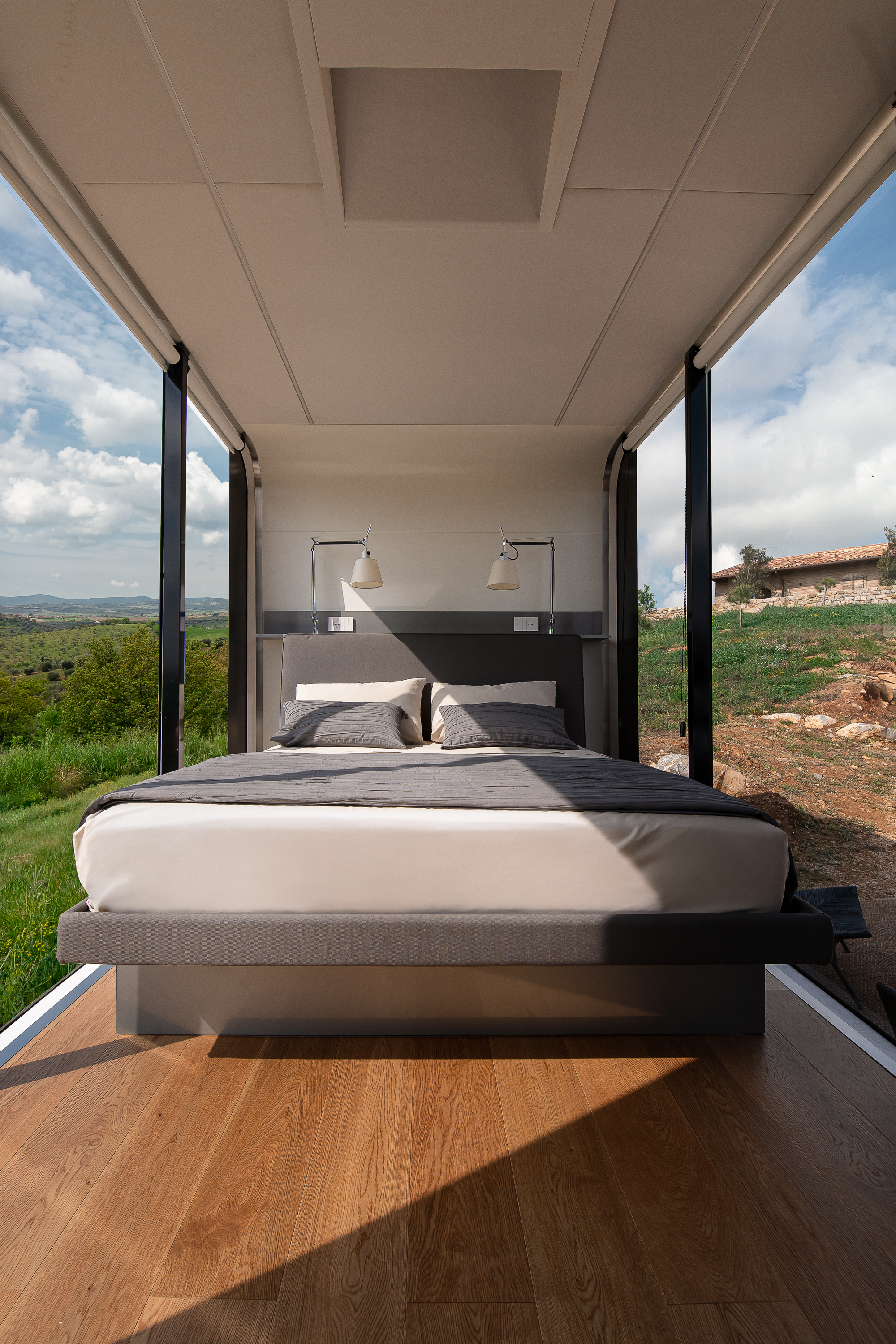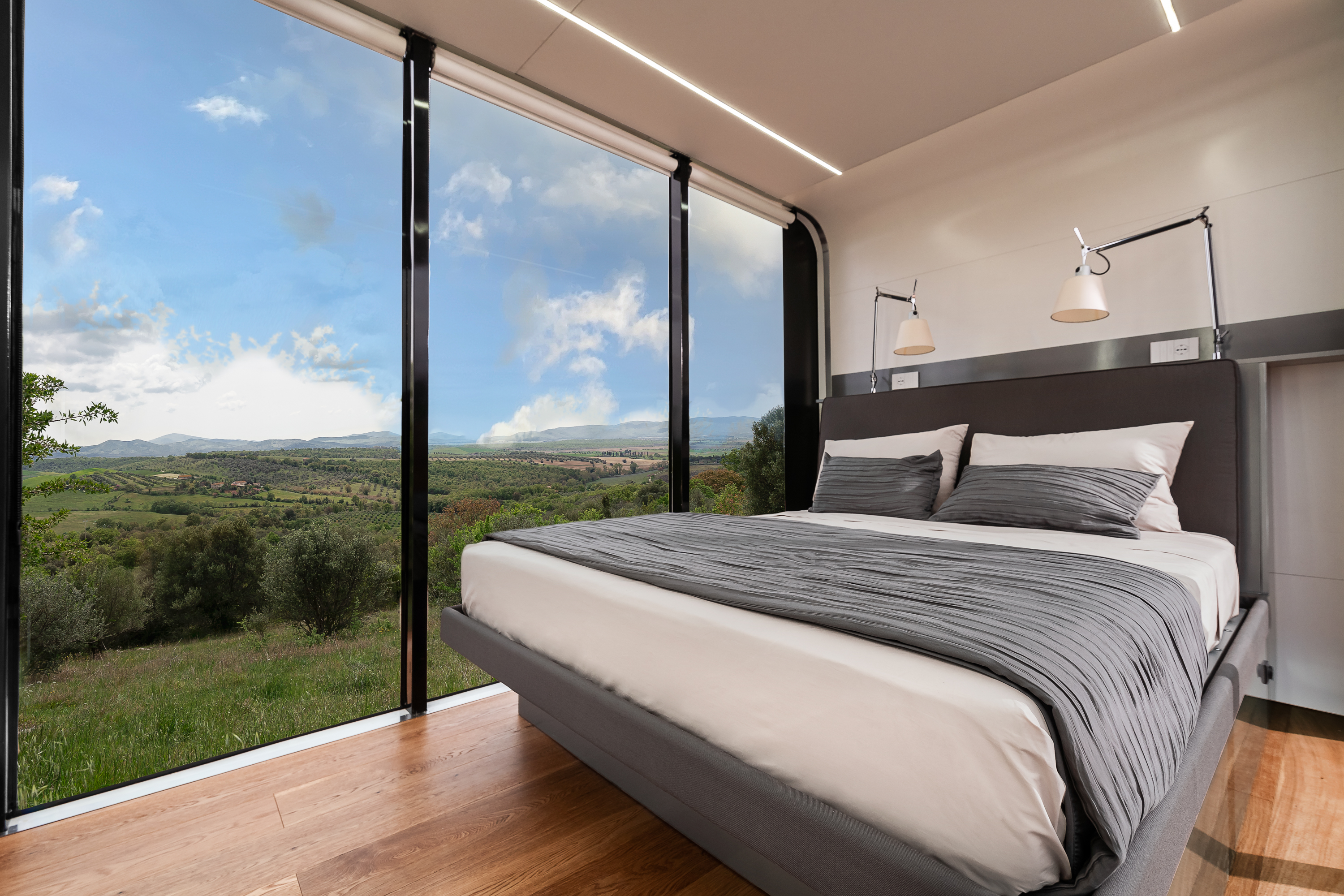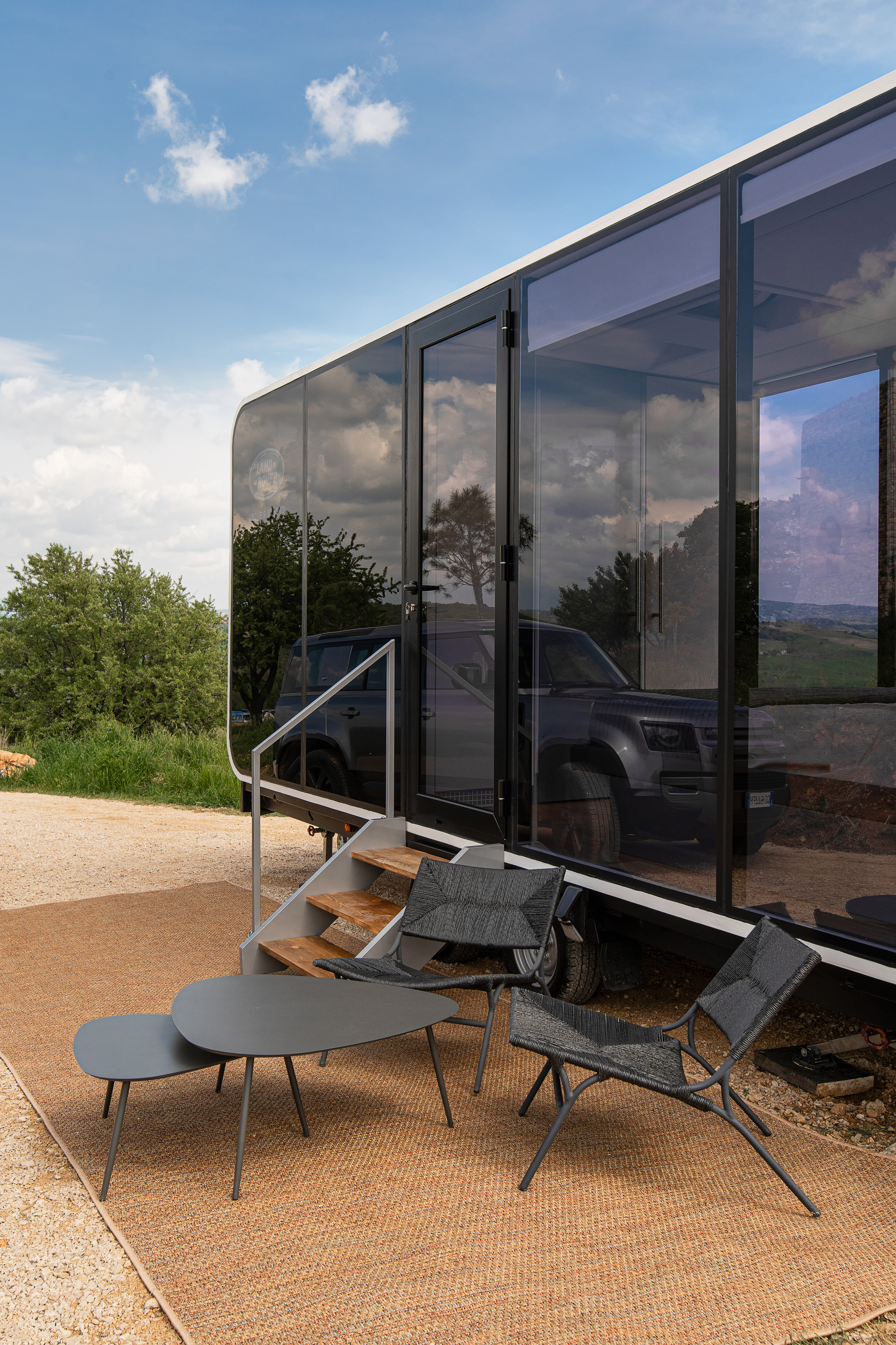 La Defender Eco Home ha una struttura in vetro, per consentire agli ospiti di immergersi completamente nella natura che li circonda; è completamente autonoma grazie a dei pannelli solari collocati sul tetto, ed è realizzata con materiali ecosostenibili: le finiture degli arredi sono costruite con materiale di scarto proveniente dalla lavorazione dell’uva, mentre il controsoffitto è rivestito da un particolare tessuto in grado di purificare l’aria. Al suo interno sono presenti una camera da letto con cabina armadio, una piccola zona ristoro e un bagno.