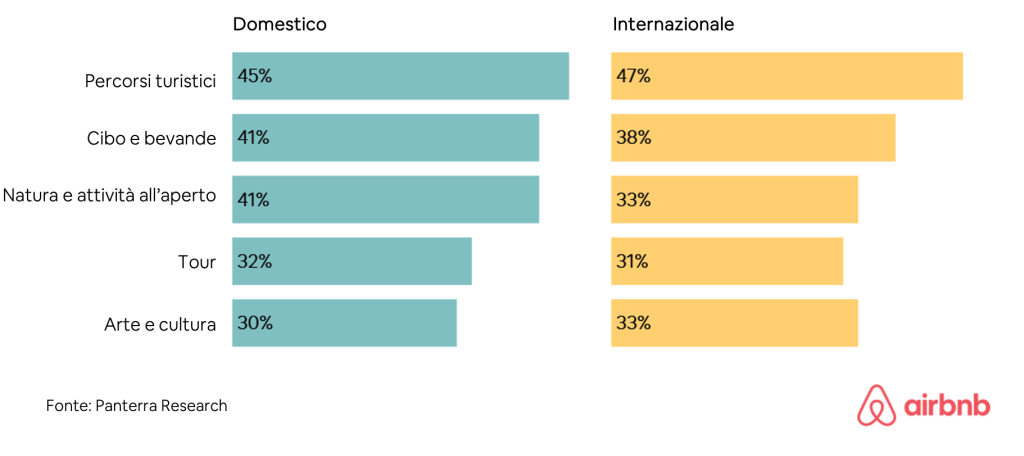 - Le Esperienze Airbnb più ricercate dai viaggiatori comprendono tour alla scoperta del territorio, percorsi gastronomici, attività all’aria aperta e a contatto con la natura, oltre a iniziative legate all’arte e alla cultura.