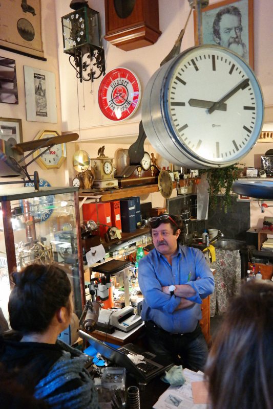 Cristiano Lini ha 40 anni di esperienza alle spalle ed è uno degli ultimi maestri orologiai rimasti in città. Tra i suoi ultimi interventi si annovera il restauro dell’orologio della Villa Arcimboldi di Milano, del XV secolo. La sua bottega in via Plinio 30 è a metà strada fra laboratorio e museo. Orologi, pendoli, lancette e ingranaggi riempiono gli scaffali del negozio e una finestra di vetro sul pavimento lascia intravedere, sotto ai propri piedi, lo storico banco di lavoro al piano inferiore. All’interno della bottega si trova anche una sua ricostruzione in miniatura dell’orologio astronomico planetario del Campanile di Clusone, l’unico al mondo che gira in senso antiorario, realizzato originariamente nel XVI secolo da Pietro Fanzago, matematico e astronomo. Cercate in soffitta: potreste avere un vecchio orologio della nonna da far rinascere grazie alla sapienza di Cristiano.