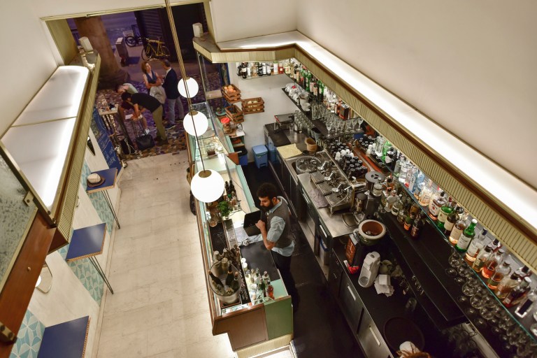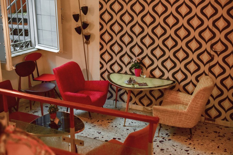 Il Cafè si sviluppa su tre piani, ha un laboratorio a vista, un salotto e una terrazza interna, dal gusto, naturalmente, retrò e ricercato. I cocktail proposti dal barman si ispirano alla tradizione esoterica dell’Esquilino.