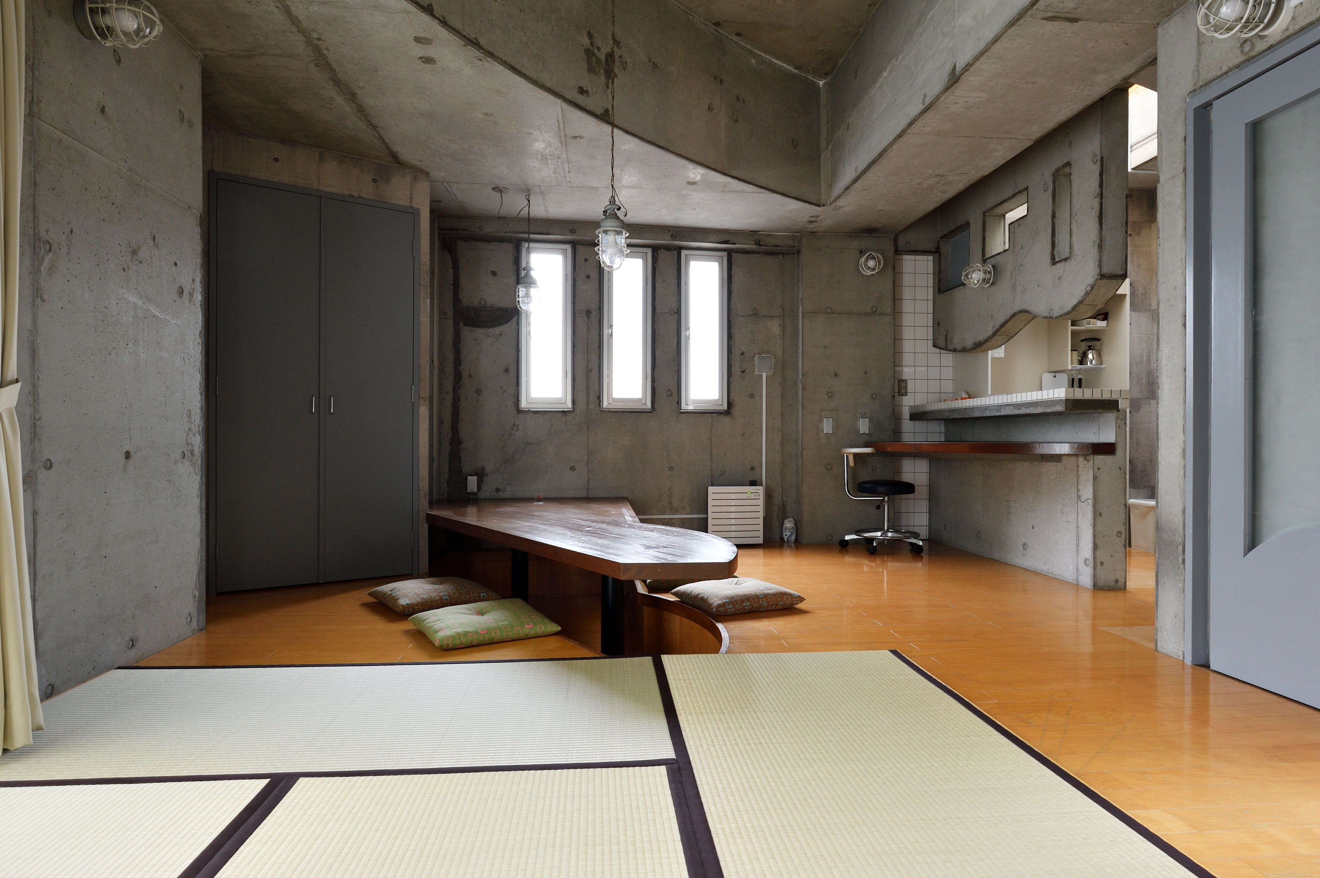La prefettura di Osaka ospita luoghi meravigliosi in cui godere della bellezza effimera dei Sakura. Per il soggiorno, scegliete un punto strategico, come questa stanza all’interno di una casa ispirata allo stile brutalista, dove gli arredi e le decorazioni tradizionali ben si sposano con la struttura architettonica in cemento.