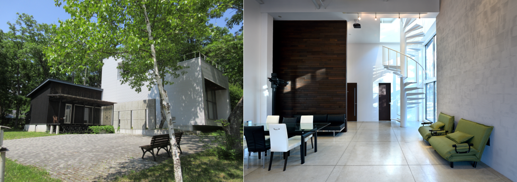 八ヶ岳山麓にある、洗練されたデザインのハウススタジオ。ル・コルビジェのLCシリーズやアルコライト、マッキントッシュ・ヒルハウスチェアなど、家具の名品を配置しており、ハイセンスな空間で非日常を体感できます。予約時に申し出ることでペット同伴も可能。希望者には星のソムリエ®の資格を持つホストが、八ヶ岳山麓の星空を案内することもできます。