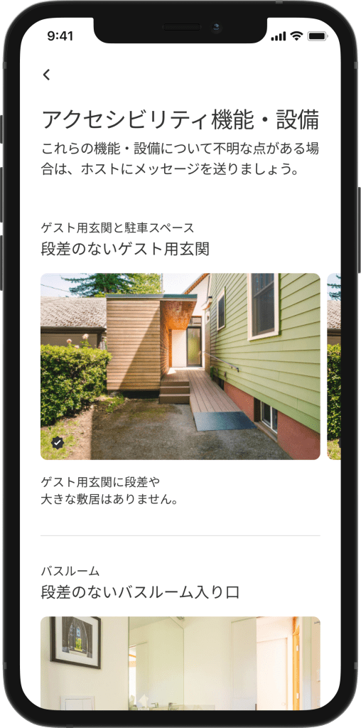 Airbnbは掲載されているリスティングにおいて、障害者コミュニティにとって更なるアクセシビリティ機能の正確さを確認するために、業界最高水準のアプローチを開発しました。ホストはアクセシビリティ対応の機能や設備写真を送信するだけで、Airbnbの専門チームの人の目で確認されます。これまでにAirbnbでは、世界中の25,000のリスティングで100,000のアクセシビリティ対応の機能や設備の正確性を確認しています。