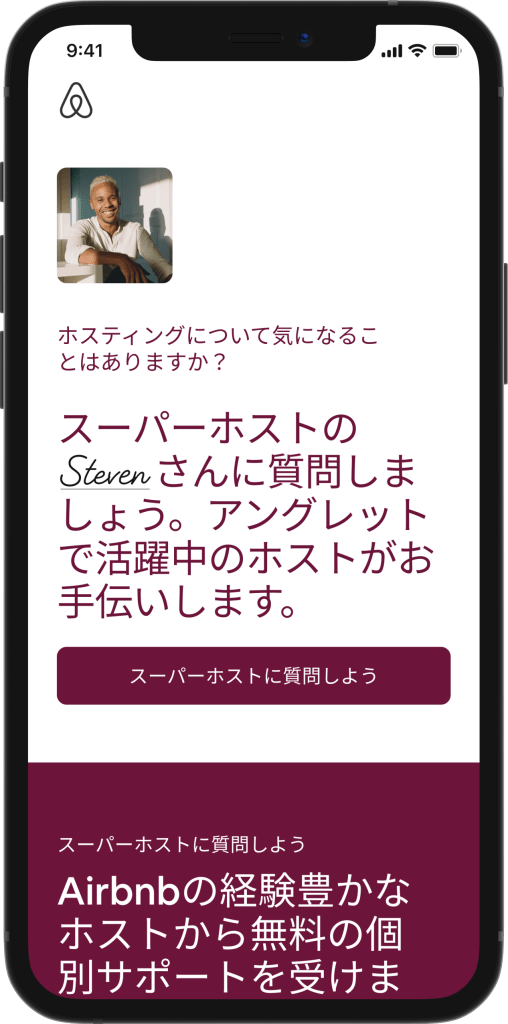 新規ホストと地域に住むスーパーホストをマッチングする機能を導入。経験豊かなホストから個別のサポート