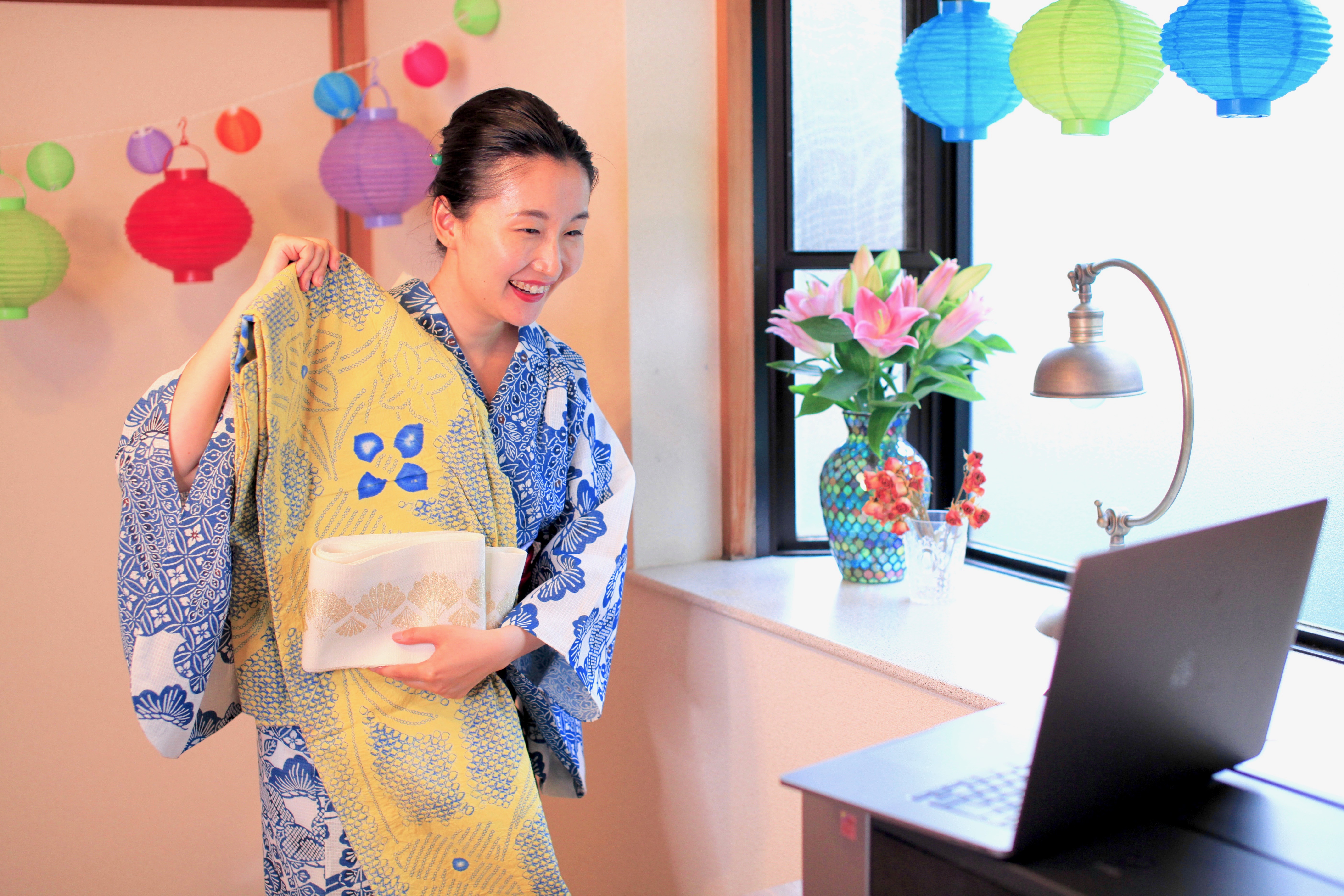 あらゆる着姿を研究し、粋でかっこよく美しい着姿の独自メソッドを生み出した粋着付け講師のホストが、浴衣の基礎知識をレクチャー、そしてゲストのお顔を見て、その方に似合う浴衣コーデをご紹介。オンライン体験では、着物と浴衣が200着以上ある自宅から発信するため、ゲストは一瞬にして粋な着姿の世界に入り込むような感覚を覚えます。