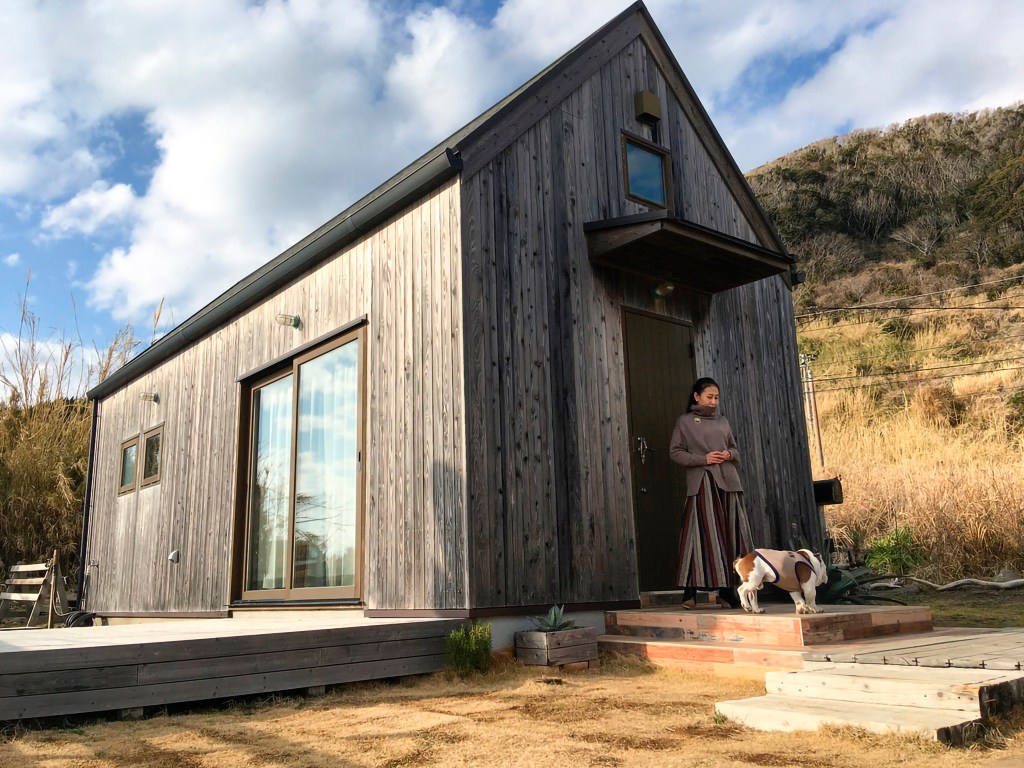 「20年前に訪れた時、県道から海沿いに曲がった瞬間、目の前に広がった景色に一目惚れをしました。いつか南房総に移住する夢を温めながら、私たちが大好きなこの景色を、自分らしく旅をする人たちと共有できればと考え、宿泊施設を始めることにしました。小屋を建てるにあたりこだわったことは、美しい景観を邪魔しない外観。木の外壁のクラシックな佇まいに仕上げました。部屋は必要最小限のものだけを置き、シンプルにしています」と語ってくれた。