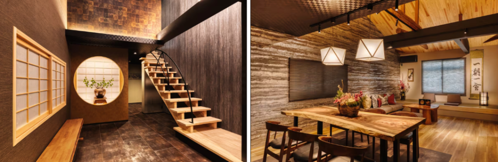上質な木材を使用したインテリア、落ち着いた和の空間、最新設備を取り入れたダイニングなど、日常を忘れさせる贅沢な時間をお過ごしいただけます。日本の伝統的な信楽焼で作られた浴槽(陶器風呂)を浴室に2つ設置しており、信楽焼のもたらす優しい温もりを体感できることも魅力。