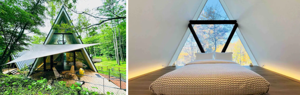 山中湖畔の魅力的な三角屋根の「Aフレームハウス」