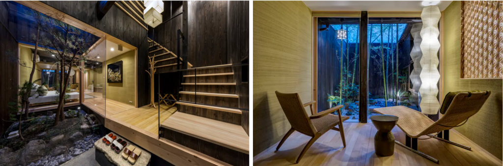 京都一の繁華街の四条河原町から近く、四条河原町駅から徒歩6分の好立地。周囲は繁華街から少し離れてるため静かで、京都の観光地へのアクセスや買い物などの便利さと暮らしやすさ全てを兼ね備えた宿でございます。100m²の町屋に2つの寝室と浴室一つがございます。Wi-fi、55インチTV、空気清浄機、エアコン、電子レンジ、洗濯機、冷蔵庫、ドライヤー、アイロン、スリッパ、など生活に必要なものは全て揃っております。また、ゲスト様はネスプレッソコーヒー、お茶、天然水をご自由にお飲みいただけます。