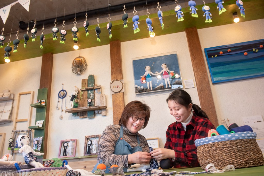 태왁은 채취한 해산물을 넣는 해녀의 작업 도구다. 해녀들은 부력이 있는 태왁을 바다에 띄워놓고 잠수하다 숨이 차면 바다위로 올라와 태왁에 의지해서 긴 숨을 토한다. 해양쓰레기가 많아지자 바다에 떠밀려오는 스티로폼에 짜투리천을 씌어서 태왁을 만든 해녀들은 업사이클링을 실천하고 있다. 제주도에서 관광가이드이자 에어비앤비로 바다 근처 집도 공유하는 조문숙님은 해녀의 딸이다. 친정 어머님과 시어머님이 모두 해녀다. 해녀가 많은 김녕마을에서 어머니인 해녀들의 지혜를 담은 태왁을 만드는 트립을 시작했다. 건강이 좋지 않아 더 이상 물질을 나가지 않는 친정어머님은 오늘도 물질 나가는 사돈이 마냥 부럽다. “늘 가는 바다잖아. 육지에선 아프던 몸이 바다에만 들어가면 내가 늙었는지, 내가 허리가 구부러졌는지 모르겠어. 그래서 날씨만 좋으면 지금도 물질을 나가고 싶어.”라는 80대 해녀. 문숙님은 어머님들이 물질 나가지 않을때 여행자들과 함께 태왁을 만들며 어머님들이 평생 걸어온 해녀의 이야기를 나누는 사랑방 같은 장소로 만들고 싶다.