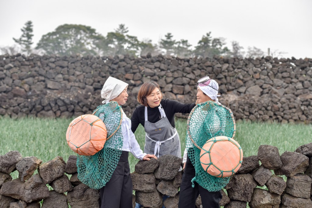 40대에 프리다이빙을 취미로 시작한 것이 계기가 되어 제주에 내려와 해녀학교를 졸업하고 해녀의 삶에 반해 정식 해녀가 되니, 제주도에서 인생이 2막이 펼쳐지면서 새로운 삶을 경험해 가는 김은주님. 이제 50대 초반이니 건강만 유지한다면 다른 해녀분들처럼 60-70대에도 활동할 수 있다며 해녀에 대한 따뜻한 애정을 보여준다. 해녀들은 물질을 나가지 않을 때는 농사도 하는 반농반어의 삶인데, 부부는 첫번째 직업인 디자인과 물질이 어우러진 반어반디의 삶을 살고 있다. “전통문화가 많이 사라져가는데, 제주도에는 아직 해녀 문화가 많이 남아있어요. ‘제주의 어멍은 다 해녀다’라는 말이 있죠. 사라져가는 문화의 한 부분을 지킨다는 점에서 큰 자부심을 느껴요.” 에어비앤비 홈 호스트인 부부는 해녀문화를 여행자들에게 제대로 전달하고 싶어서 명랑해녀 홈스테이를 운영하다가 좀더 다양하게 해녀와 해녀 문화를 배우고 경험하는 공간의 필요함을 느끼고 살던 집을 해녀문화를 경험하는 공간으로 만드는 중이다.
