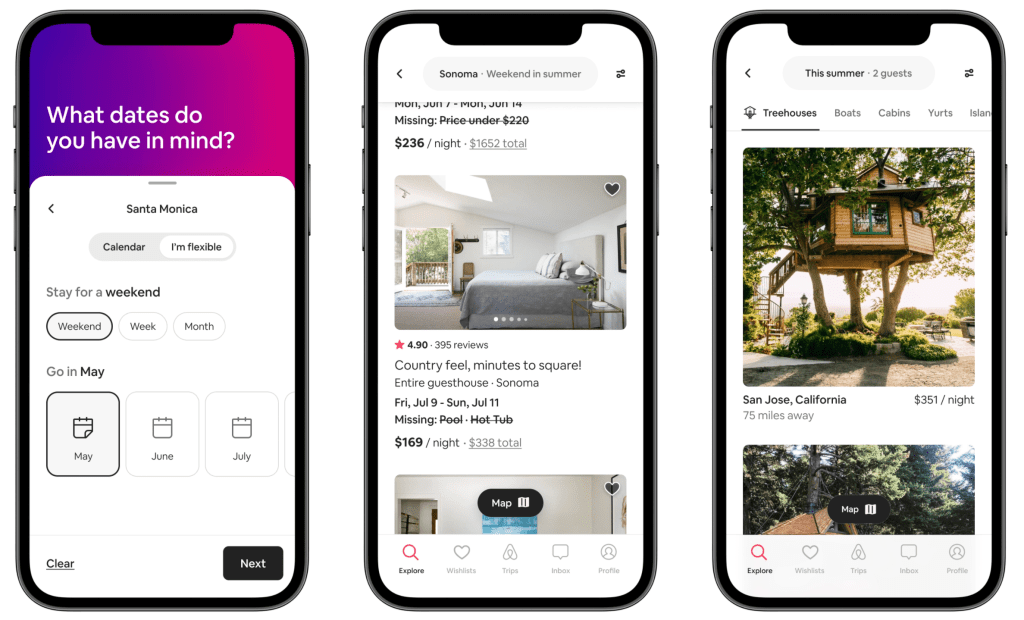 ‘유연한 숙소매칭’(유연한 검색결과)은 숙박할 장소를 검색할 때 검색 범위를 살짝 벗어나는 집까지도 표시하도록 해 다양한 선택권을 제공하도록 하는 기능이다. 이를 통해 검색에 지정된 특정 내용을 벗어나는 멋진 집을 놓치는 일이 없도록 했다. 예컨대 1박 당 25만원을 최대값으로 설정해 해변에 있는 집을 검색하더라도 이 범위를 살짝 벗어나는 선택지도 찾아낼 수 있게 된다.
