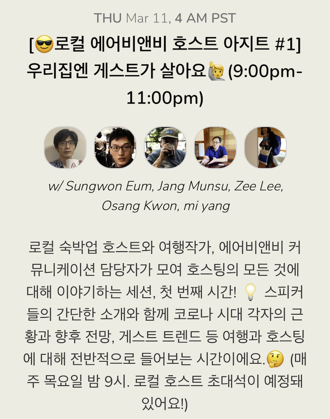 클럽하우스에서 열리는 에어비앤비 호스트들의 집담회