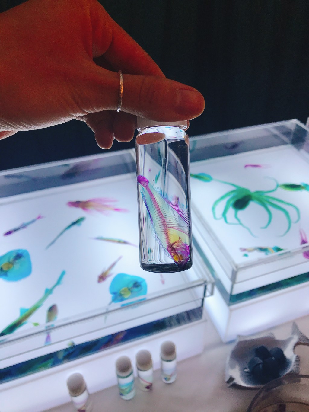 게스트들은 해양생물의 골격 염색 표본을 제작하는 과정 설명을 들은 뒤, 여러 종의 투명 물고기를 골라 그림을 그려 예쁜 머그잔으로 만들고, 세상에서 하나 뿐인 아름다운 골격 염색 표본을 소장하는 독특한 경험을 하게 된다.