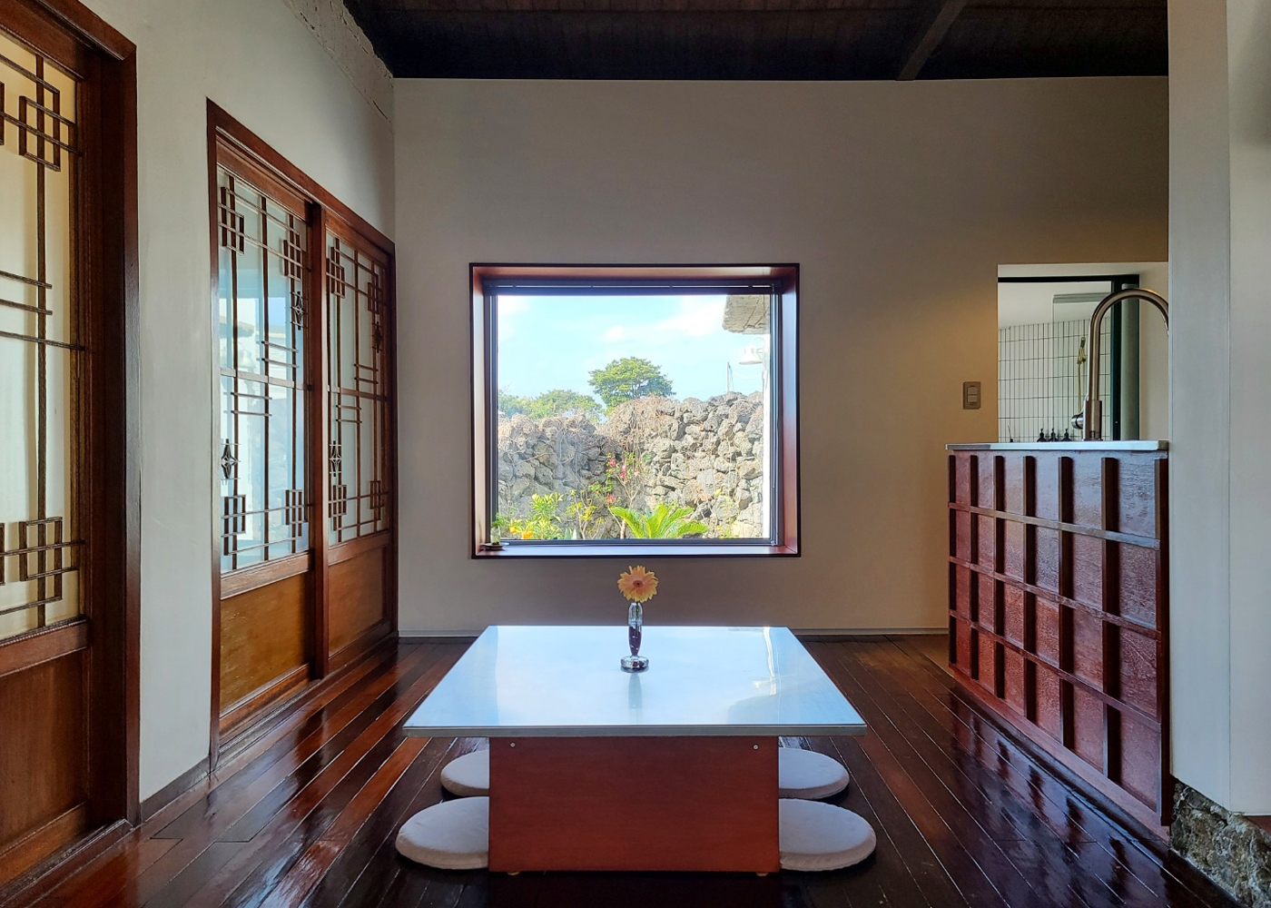 제주도의 가장 서쪽, 산방산 자락의 독립서점 어떤바람에는 담쟁이 넝쿨이 창을 둘러싼 멋진 공간이 있다. 제주 풍경을 감상하며 음료를 마시는 여유도 느낄 수 있다. 제주 느낌 물씬 나는 에어비앤비를 찾아 어떤바람에 출퇴근하는 하루를 보내보자.