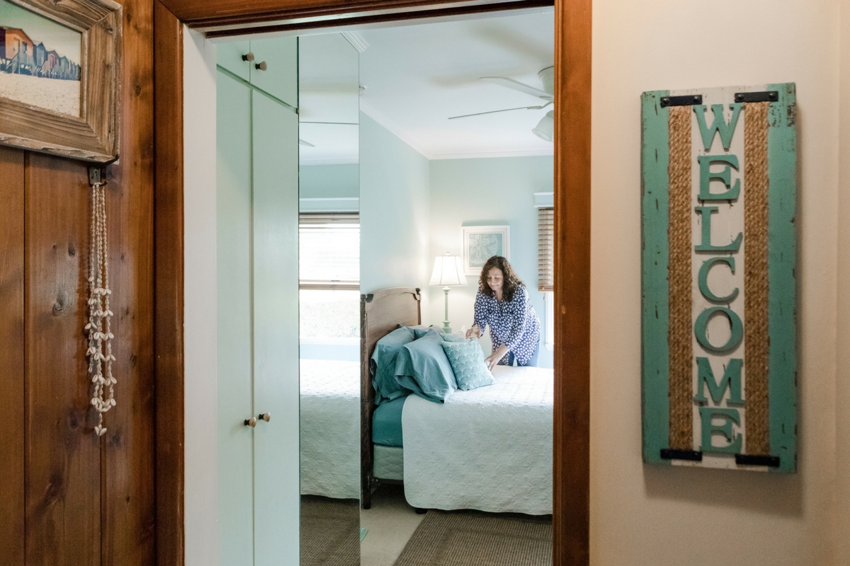 Debbie has owned her home for 30 years. She first began opening her house to guests after going through a divorce. “My house is very important to me, because it represents my family,” she says. “I raised my children here. And, as my career progressed, I noticed there are less and less opportunities for women over a certain age. I found renting out the rooms in my home generated enough income to cover the majority of my bills—hosting allowed me to afford to stay in my home.”