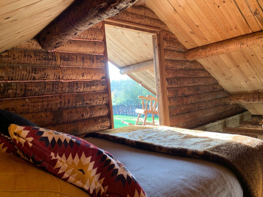 Afgelegen blokhut omgeven door groen voor slow festivalreizigers