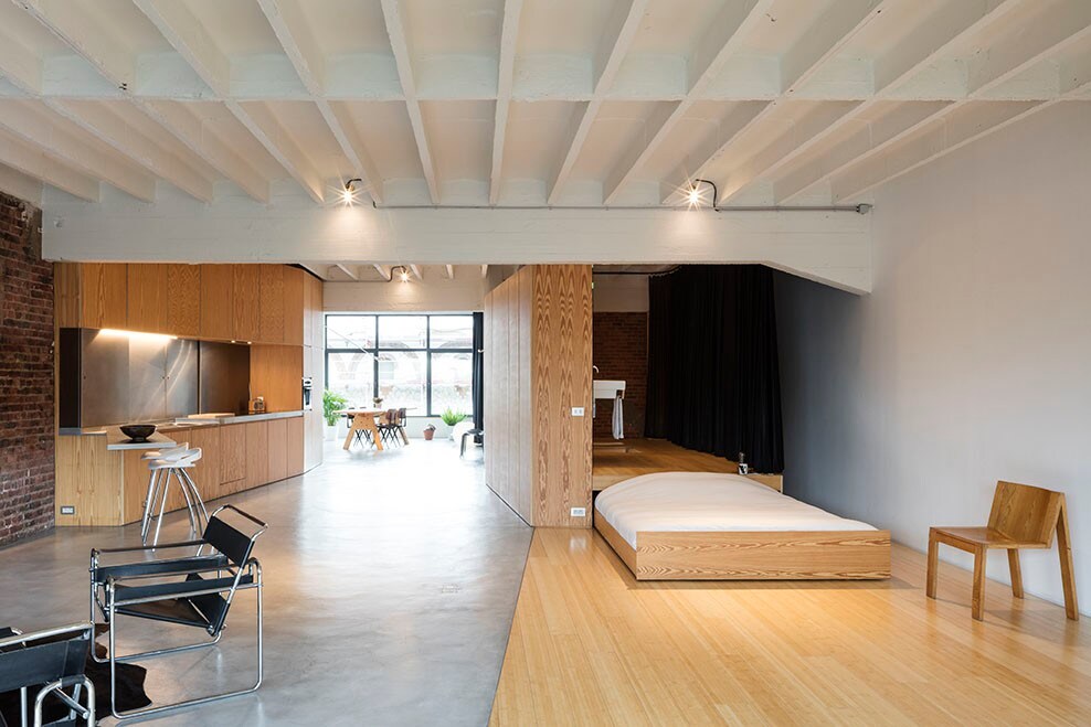 Deze ruime loft, ooit een oude opslagplaats uit 1924, is nu een indrukwekkende Airbnb in het bruisende kanaalgebied nabij Tour & Taxis. Dit appartement vormt de perfecte uitvalsbasis voor festivalgangers die geïnteresseerd zijn in design, kunst en architectuur.