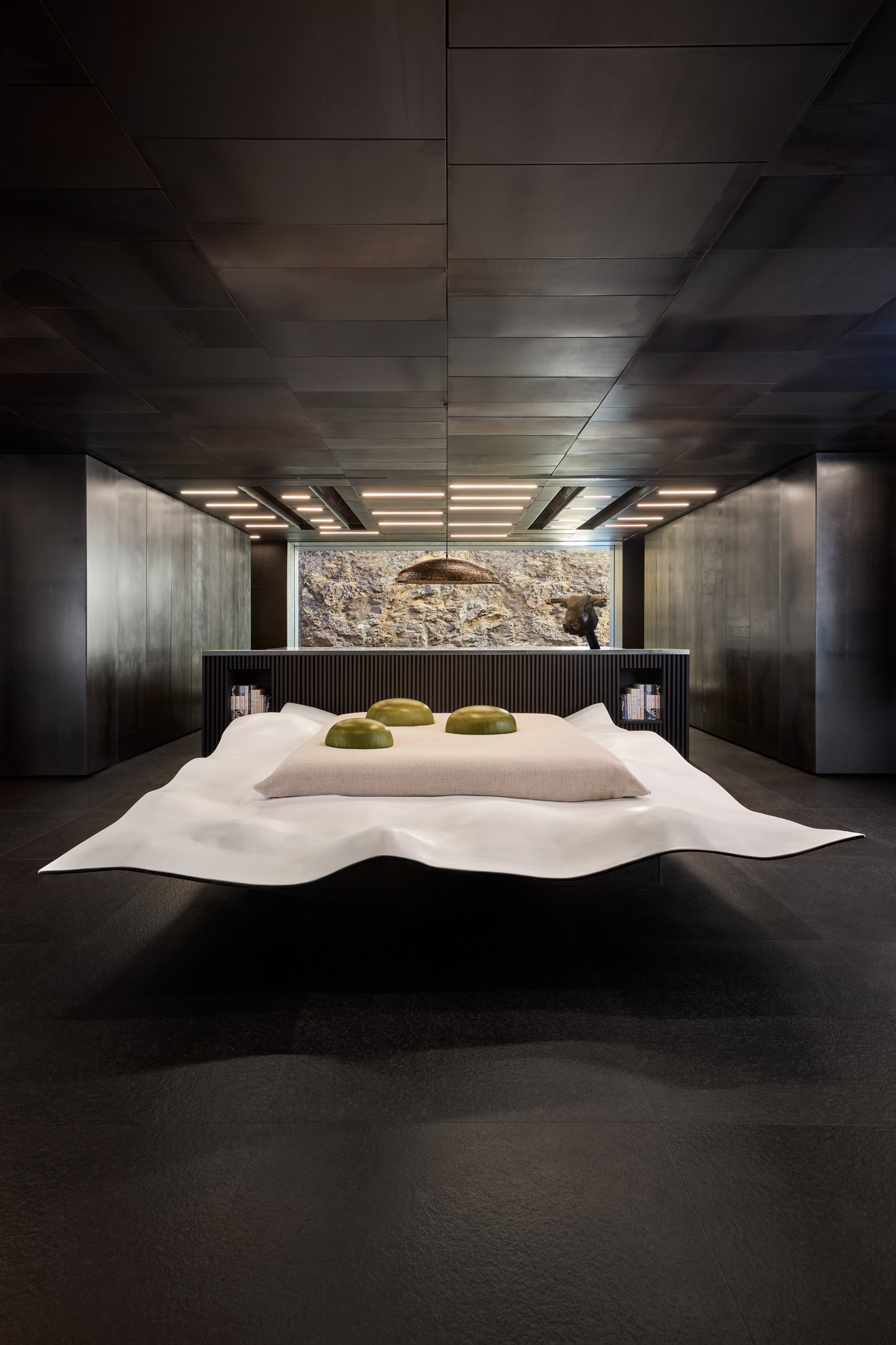 - Een nacht in het voormalige restaurant op een ‘plated’ bed, geïnspireerd op de beroemde bolvormige olijf van elBulli.