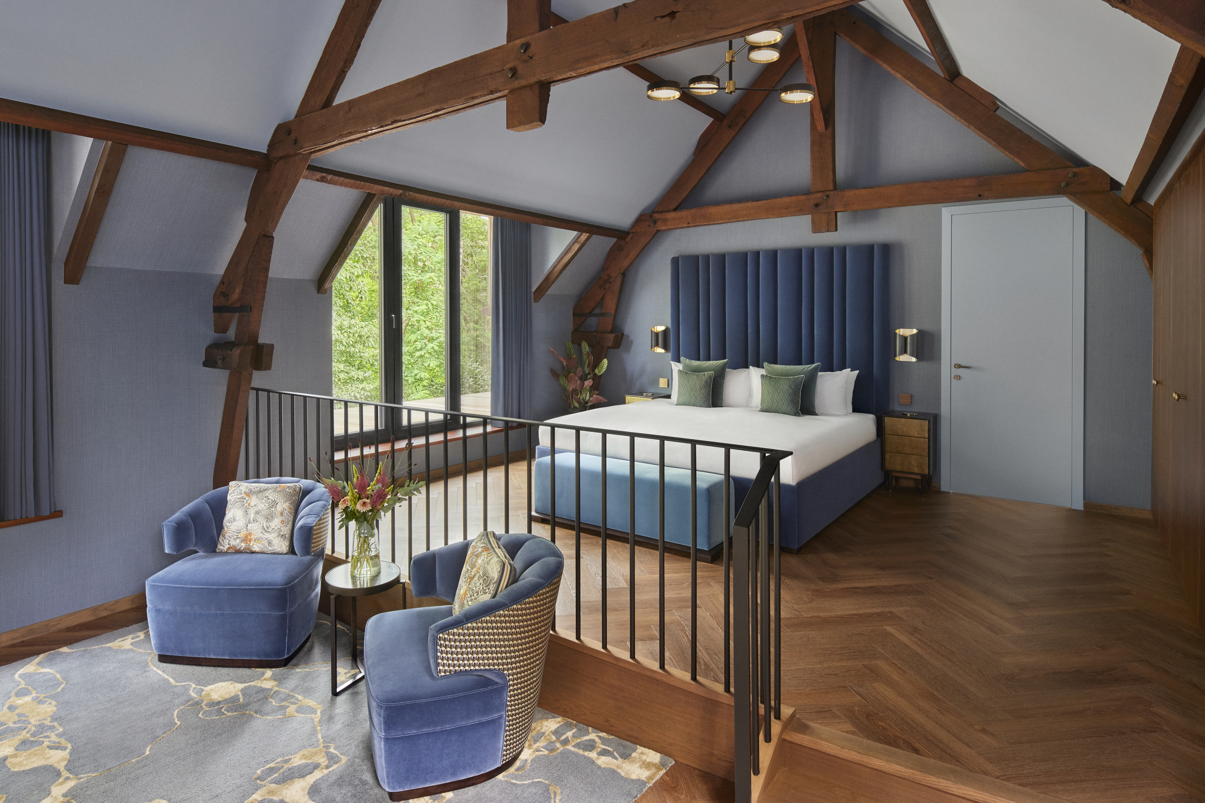 - Een verblijf in de master bedroom met een prachtig uitzicht op de tuin.