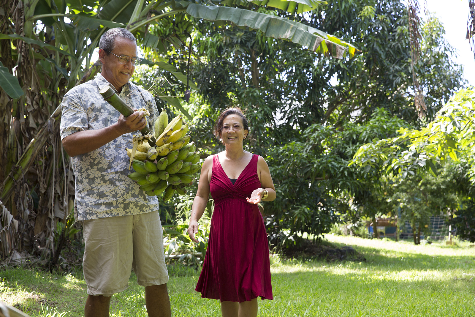 Meet Marie and Alec: Longtime North Shore residents and passionate Airbnb hosts. Husband Alec, a native Hawaiian, and wife Marie, a 30-plus year resident of Hawaiʻi, love their North Shore home. “This home is on land that was originally a ranch owned by my great-grandfather,” notes Alec. “My father was a cowboy and worked this land, so this property has a rich family history.”