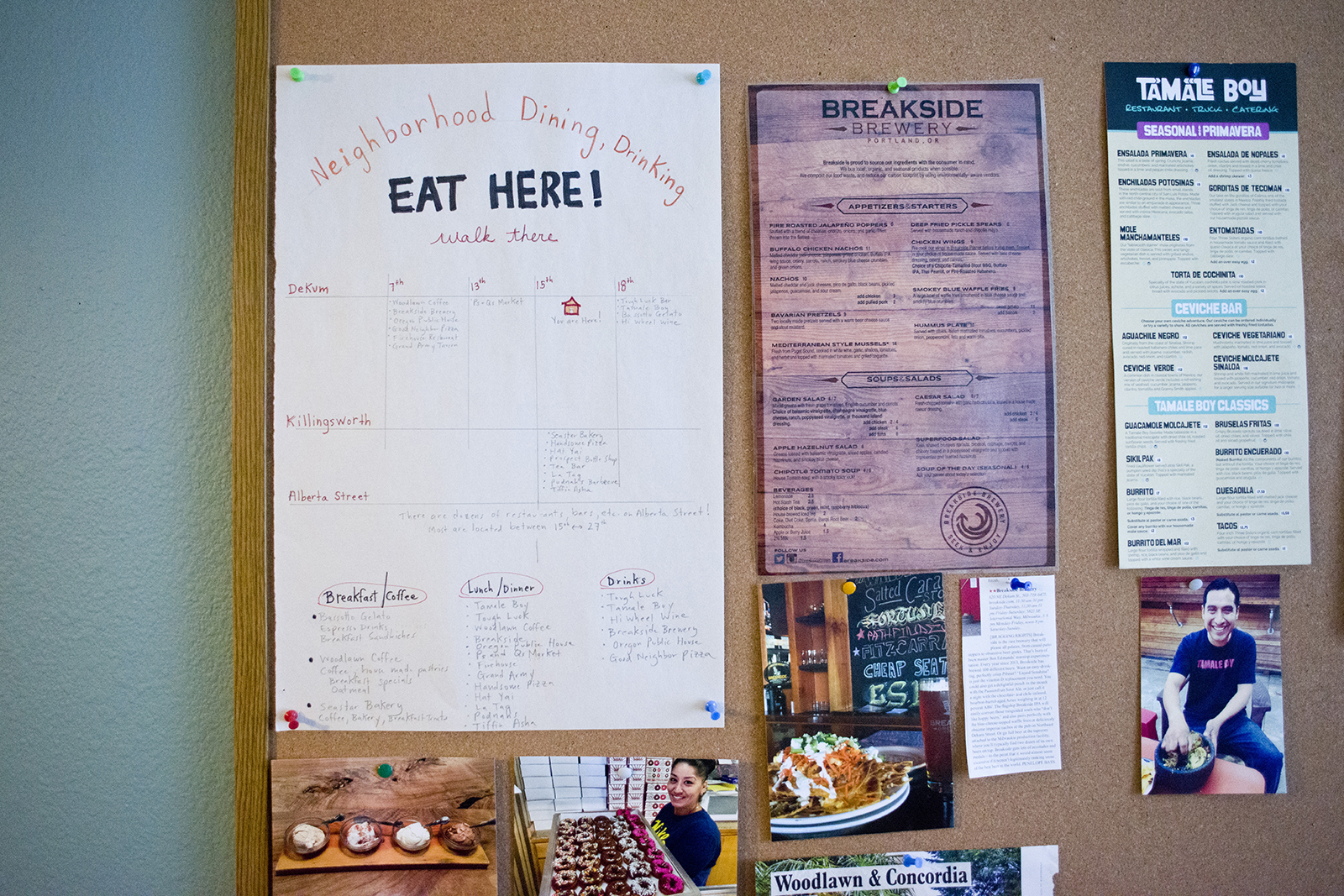 Sarah provides her guests with local recommendations and menus for many Northeast Dekum street businesses.