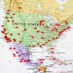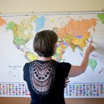 On Yarrow’s wall-sized map, guests pin their hometowns around the world.