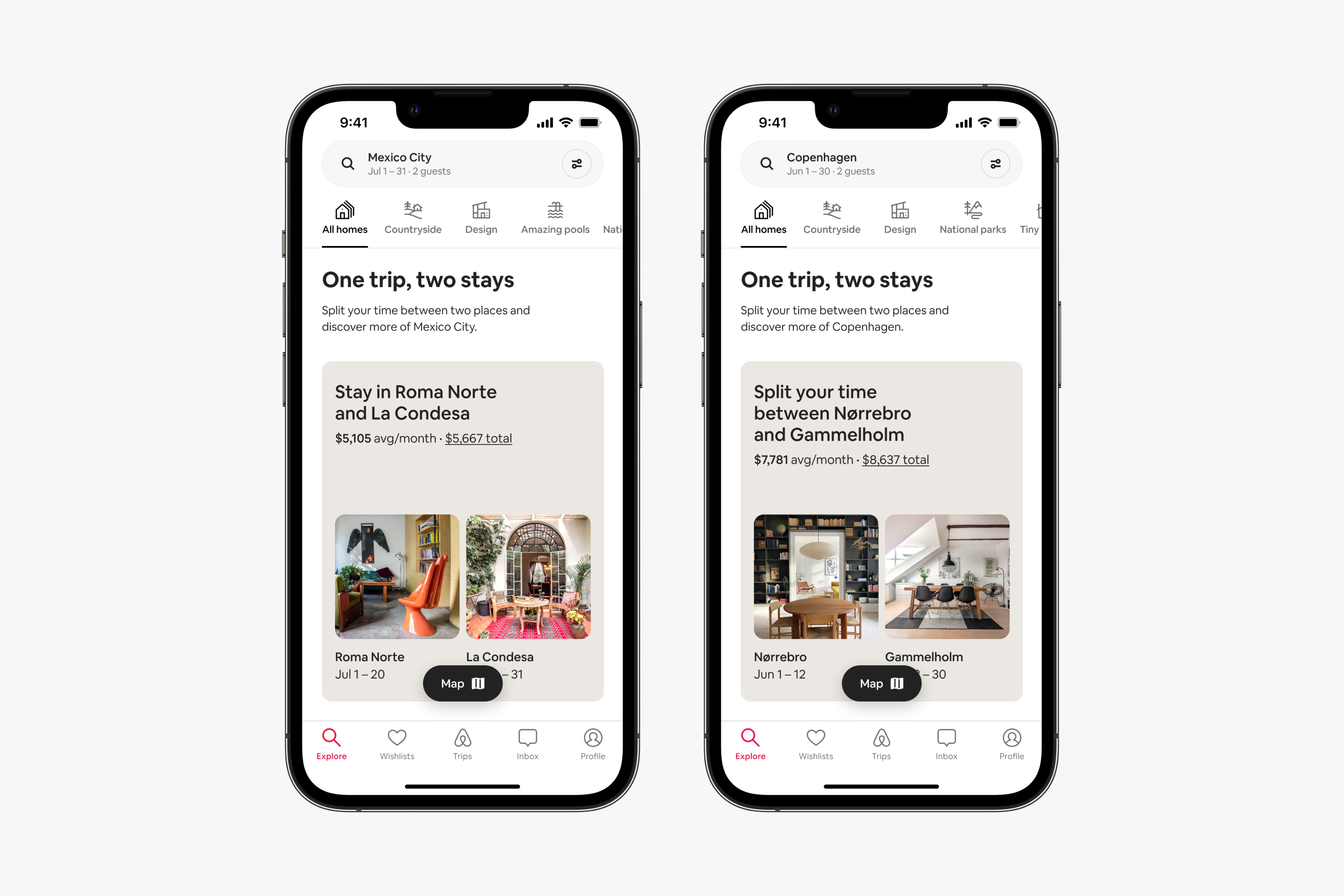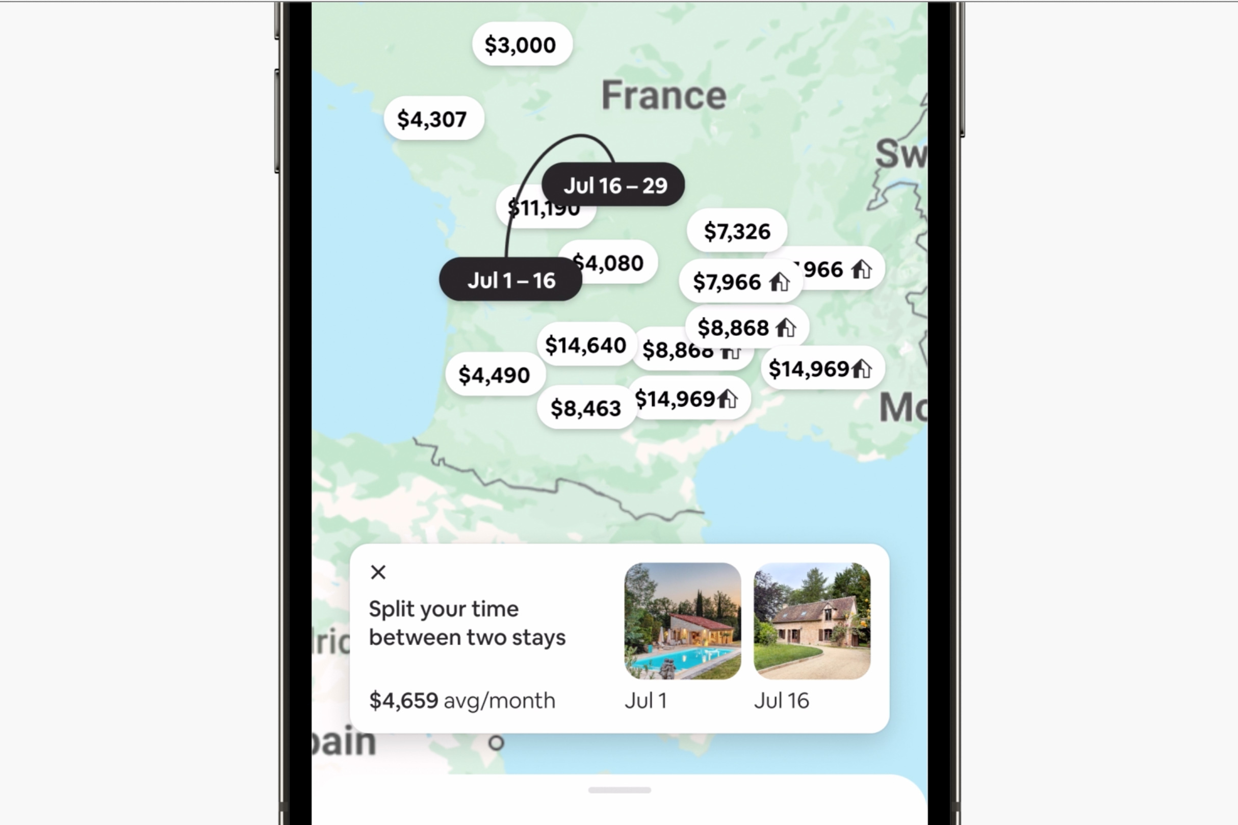 When guests search for a longer stay in a single destination, we’ll offer the option of splitting their trip between two different homes in the same area.
