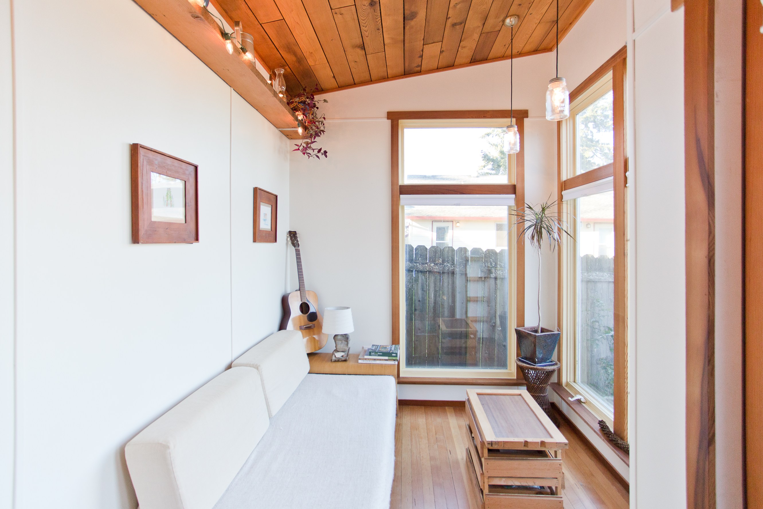 Com uma vista fantástica da janela para o mar, esta casa é um verdadeiro oásis de tranquilidade. Este é o lugar ideal para quem pretende viver momentos eco-sustentáveis entre o mar e a natureza. Desde cestos de tecido transformados em candeeiros de teto, um regador como chuveiro, cobertores e tapetes reutilizados, os espaços desta casa estão todos decorados com materiais reutilizados.
