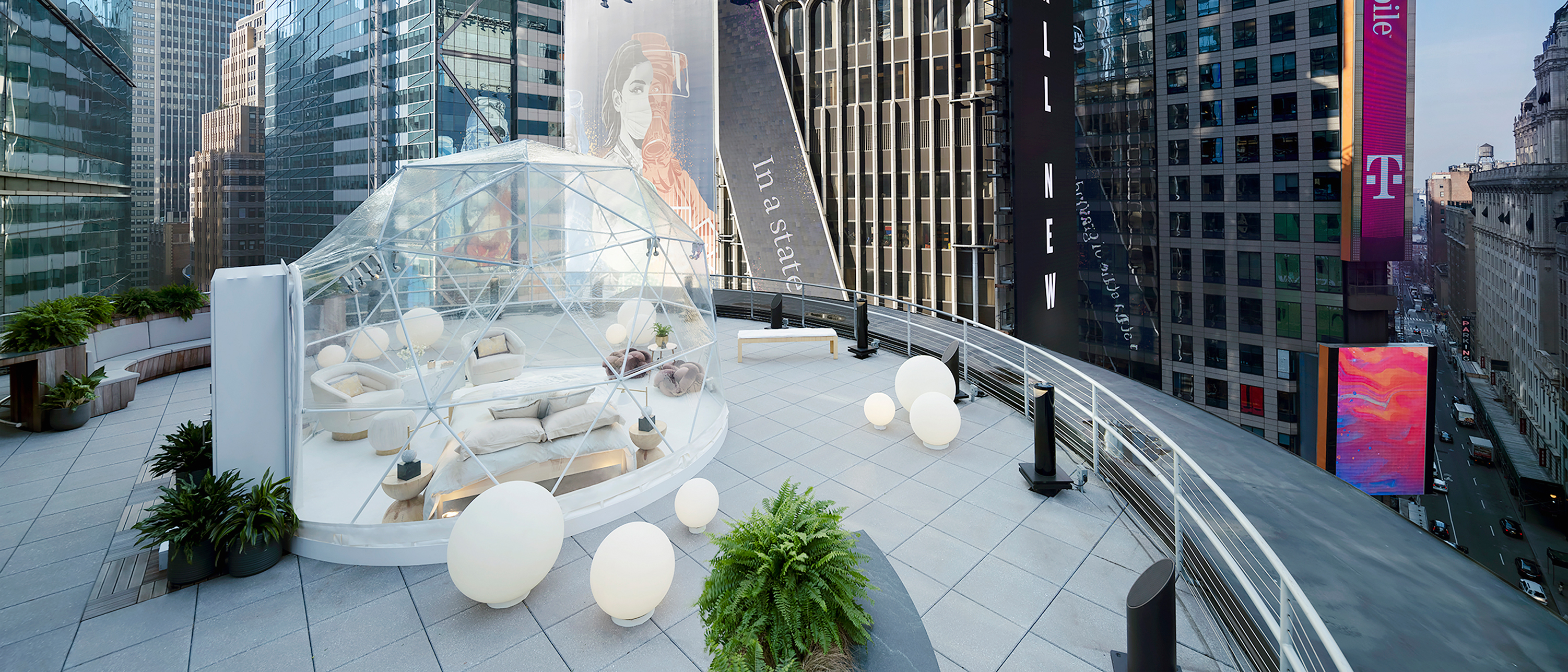 Acima da Times Square, no terraço exterior do Nasdaq (e isolada em segurança), os hóspedes terão a sua própria cúpula geodésica para entrar no esperado ano novo enquanto desfrutam da vista panorâmica da bola de cristal cintilante. Com as celebrações da Times Square a tornarem-se virtuais este ano, os convidados terão uma experiência verdadeiramente única durante as celebrações tradicionais de confetis, mesmo por baixo da bola.