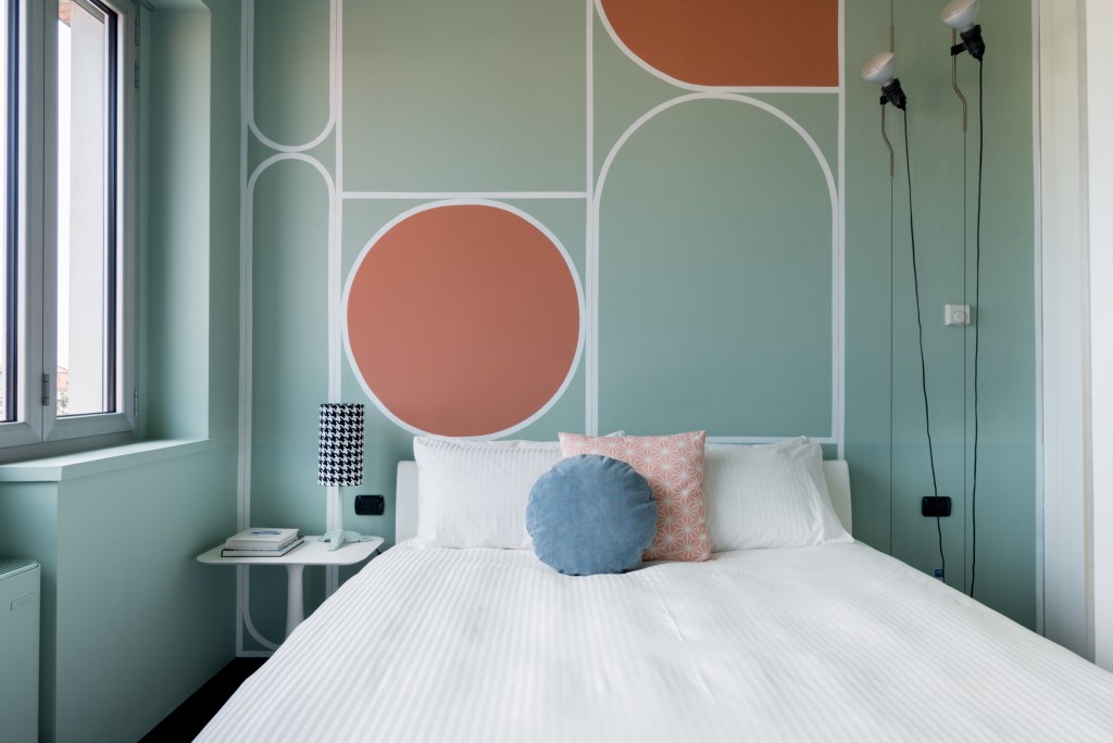 Neste atraente alojamento disponível na categoria Plus na plataforma Airbnb, os hóspedes não só desfrutam de uma vista sensacional sobre a cidade e a Catedral de Milão, como também dos detalhes do interior do apartamento. Vários elementos gráficos em tons pastel conferem à propriedade uma aparência elegante e moderna. Com o Living Coral, as nuances delicadas são rompidas – os círculos em coral vermelho por cima da cama irradiam de imediato um calor agradável.