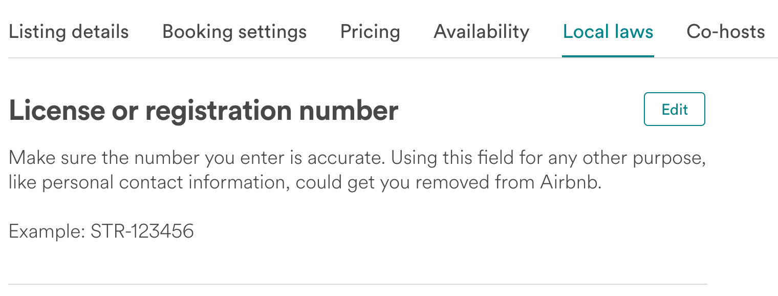 - Go on the Airbnb website. Click on “Listings“, then “Manage listing” and finally on “Local laws“.