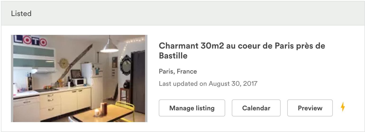 3) Go on the Airbnb website. Click on “Listings” and then “Manage listing“.