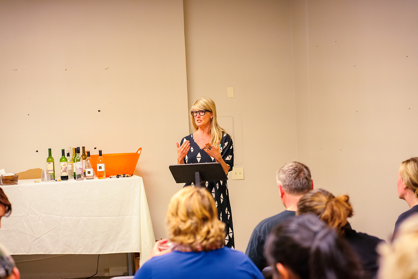 Diane addresses the crowd of Airbnb hosts at the 2nd annual Ballard Merchant Fair