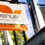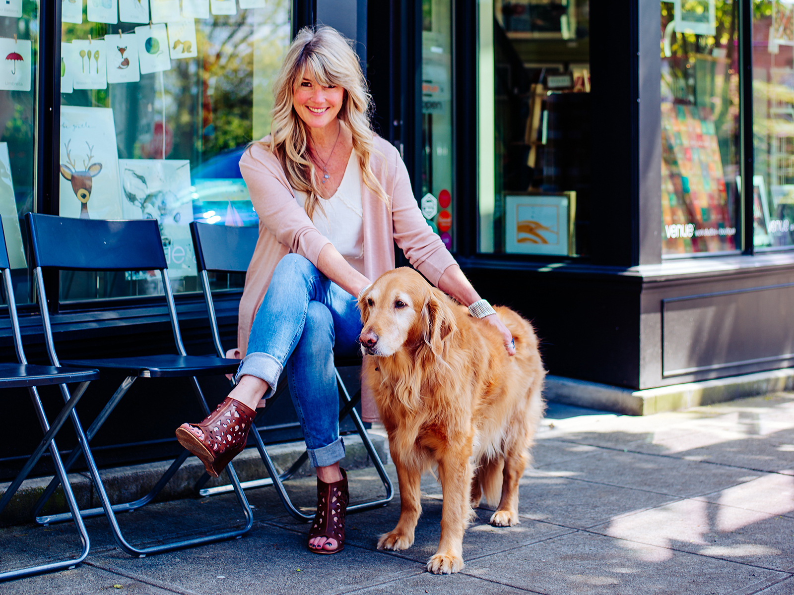 Diane poses with her lovable pup Stella outside her shop, Venue Ballard