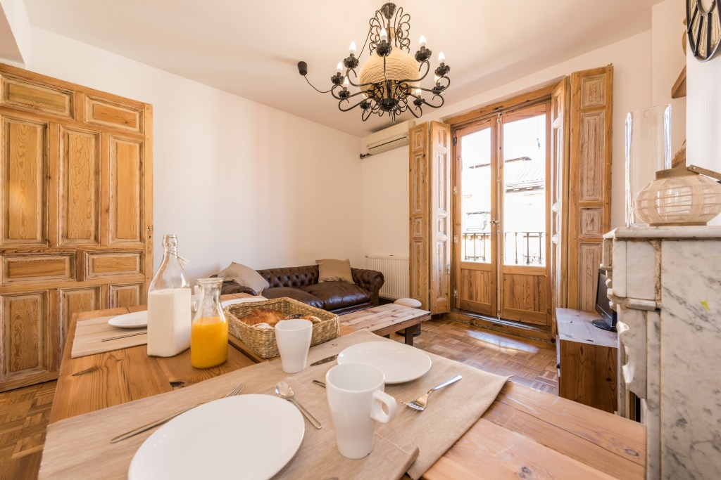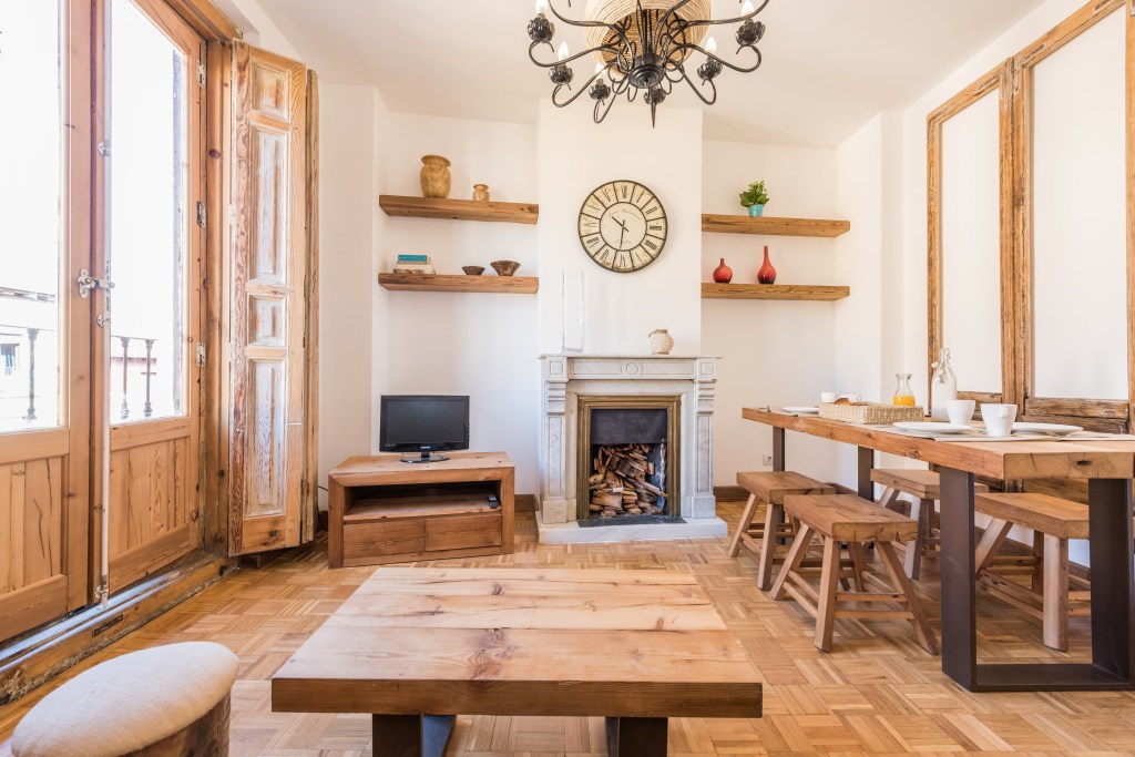 This bright apartment has two bedrooms with wood furniture made by the host from recovered wooden beams. Have a great time and stay cozy with family and friends in front of the fireplace while temperatures drop.