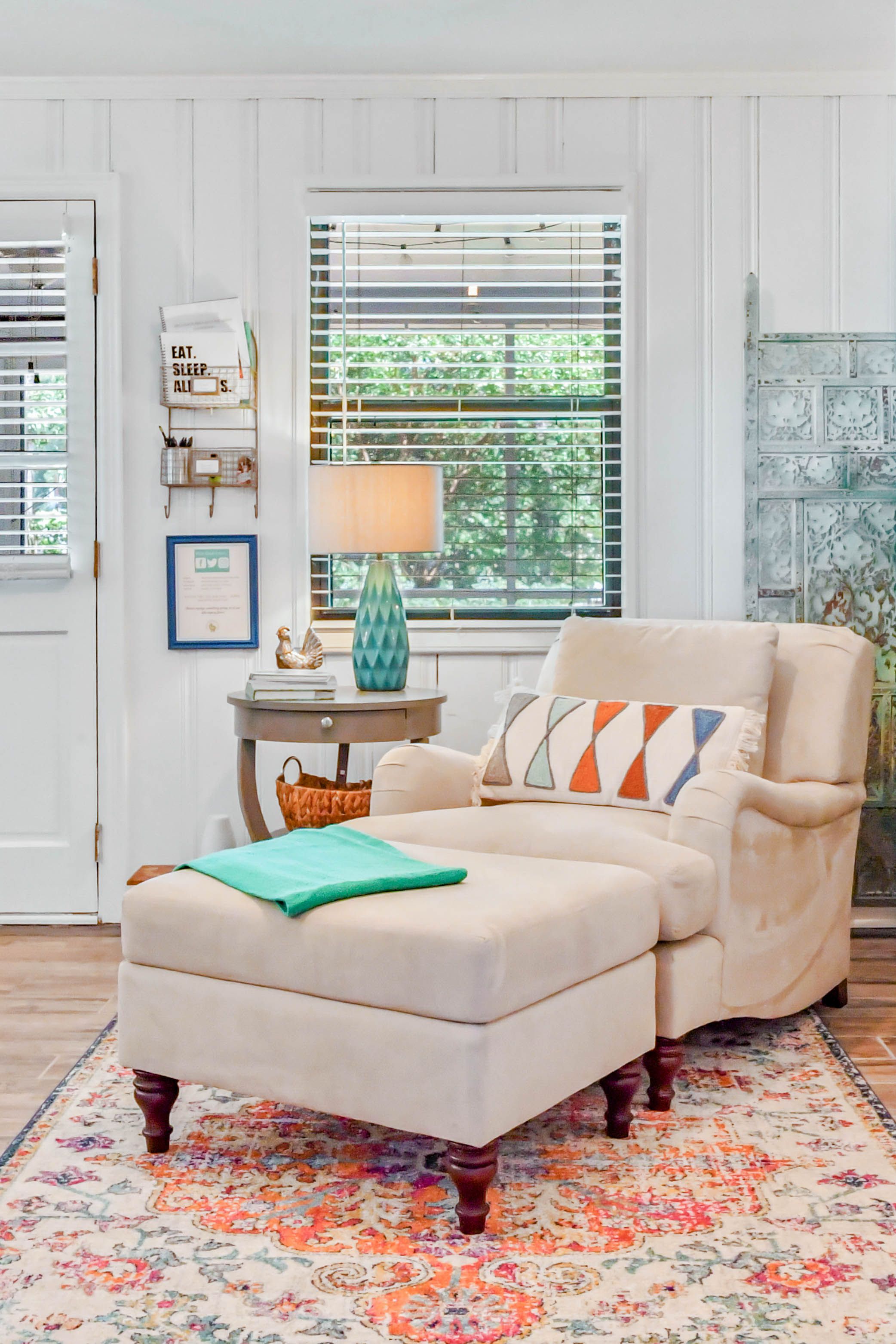 Start a day of canvassing off right with a well-balanced breakfast in a bright kitchen with marble counters and hexagon tile floors. This radiant bungalow is steeped in boho-chic charm – and is even fully equipped with an office nook and high speed wifi to meet pressing deadlines.