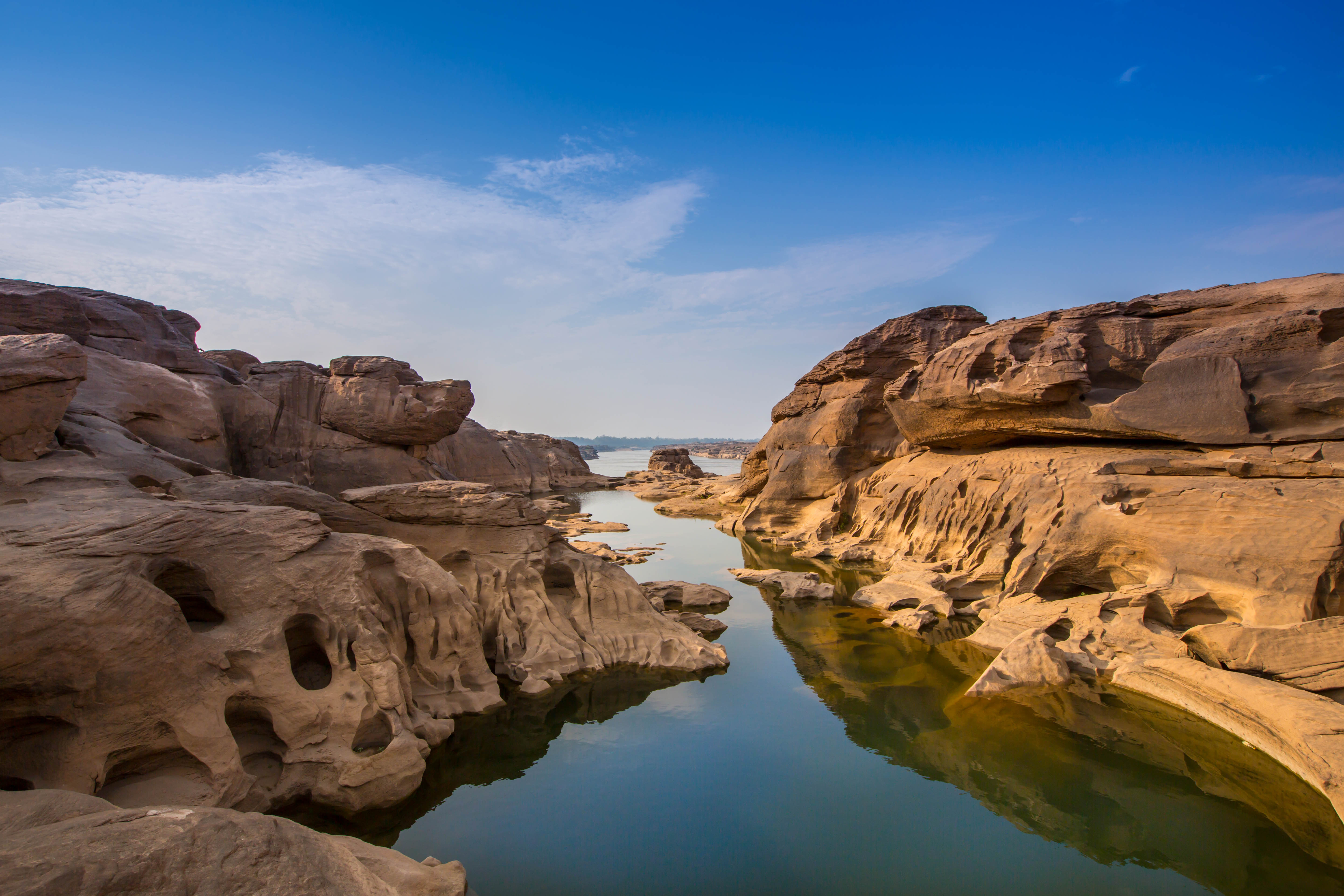 อุบลราชธานี: ภาคตะวันออกเฉียงเหนือของไทยยังมีอะไรมากมายให้เหล่านักเดินทางที่ต้องการหลีกหนีจากเส้นทางท่องเที่ยวอันพลุกพล่าน หันมาสัมผัสความงามของธรรมชาติ อย่างเช่น สามพันโบก ซึ่งถือเป็น "แกรนด์แคนยอน" ของเมืองไทย เพราะเป็นแหล่งโขดหินที่ใหญ่ที่สุดบนลุ่มน้ำโขง และขึ้นชื่อในภูมิประเทศที่เหมือนได้ยืนอยู่บนดาวอังคาร โดยมีหลุมและทะเลสาบตื้นๆ อยู่มากถึง 3,000 จุดให้ชม ทั้งนี้ จังหวัดอุบลราชธานียังเป็นที่รู้จักกันในนาม "สามเหลี่ยมมรกต" เพราะมีพรมแดนติดกับประเทศกัมพูชาและลาว – หากได้แวะมาเที่ยวที่นี่ ก็ยังสามารถสำรวจเยี่ยมชมงาน หัตกรรมอันเลื่องชื่อประกอบด้วยผ้าทอมือและเครื่องทองเหลือง และขอแนะนำว่าต้องลองชิมเมนูท้องถิ่น อาทิ ไส้กรอกอีสาน กุนเชียง และหมูยอด้วย