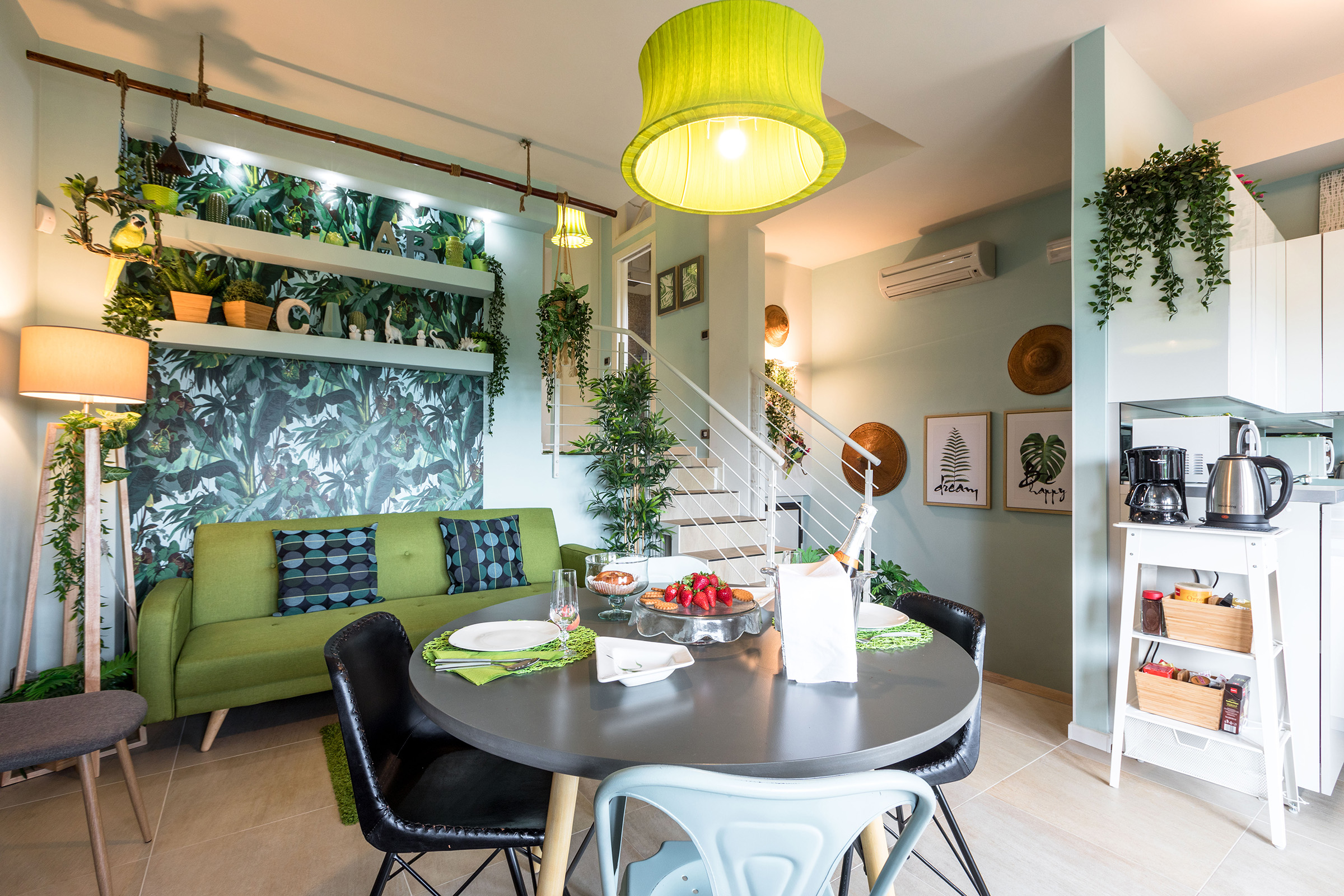 Situated close to Lake Garda, travelers visiting this Italian coastal town will be delighted to find the inside is styled after an outdoor garden. Guests will find greenery throughout, from the living room with hanging wall plants to the bedrooms with palm print wallpaper and faux grass rugs – guests may find this stay to be bellissima.