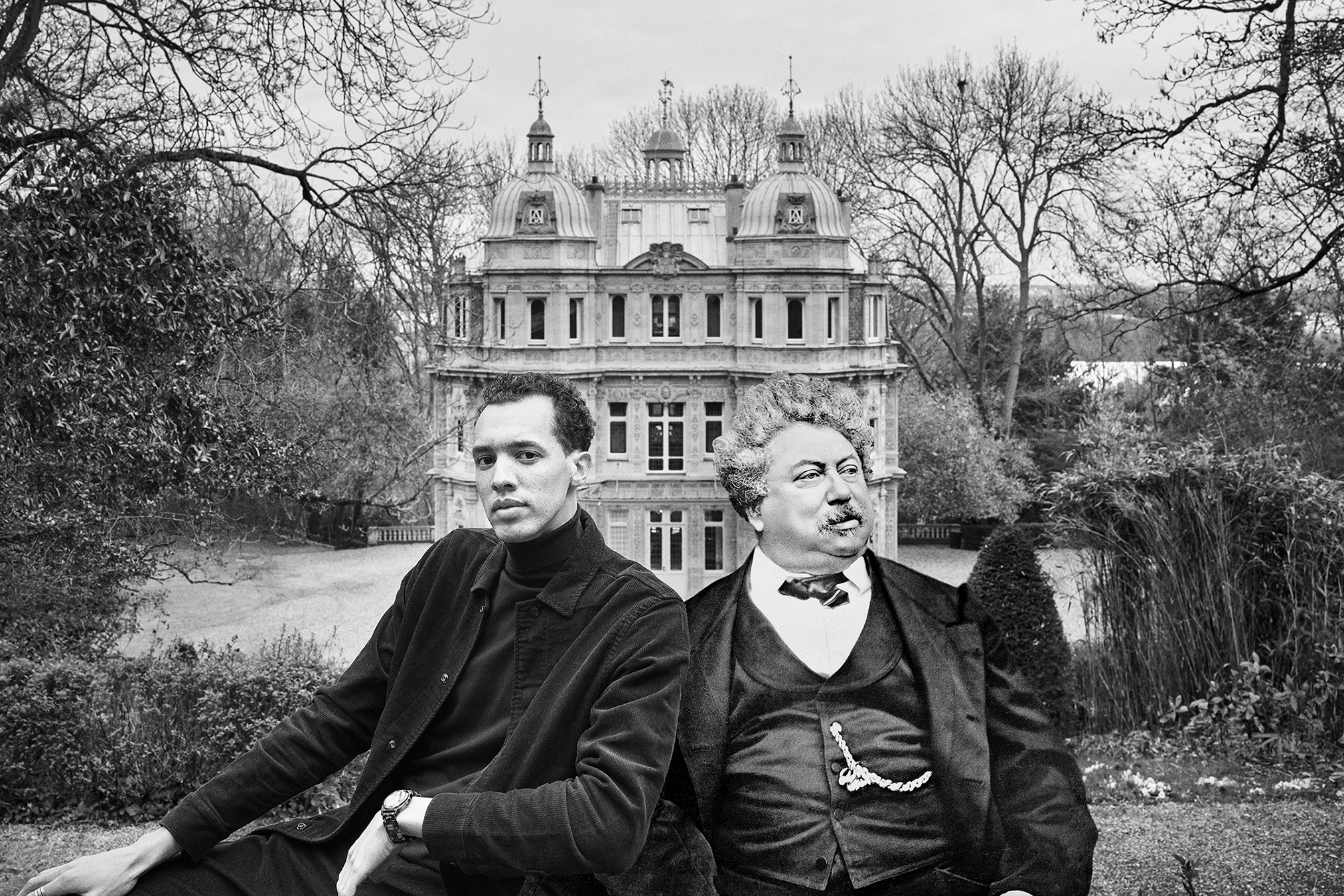 Singer, rapper and writer Gaël Faye next to his icon Alexandre Dumas.