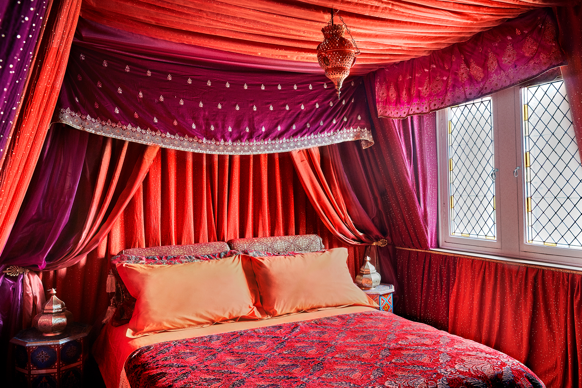 The bedroom comes complete with its own Cocteau-inspired lounge area.