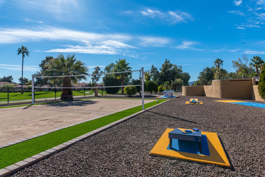 Nestled against stunning mountains and within minutes to world-class golf courses, this home boasts a 9-hole mini golf course, outdoor bowling, soccer field, basketball court, pool, hot tub, volleyball court, shuffleboard and more.