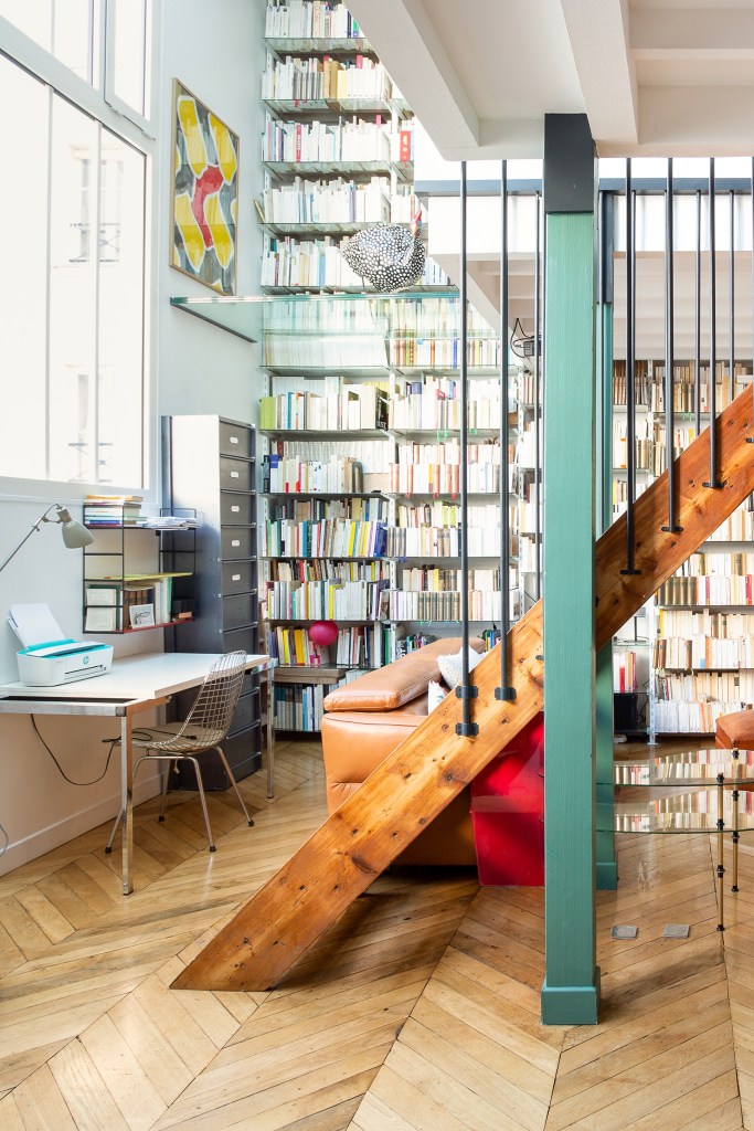 - Imagining the history books that await in the libraries of this contemporary loft and color blocked Marais apartment – the things of bibliophilic daydreams.